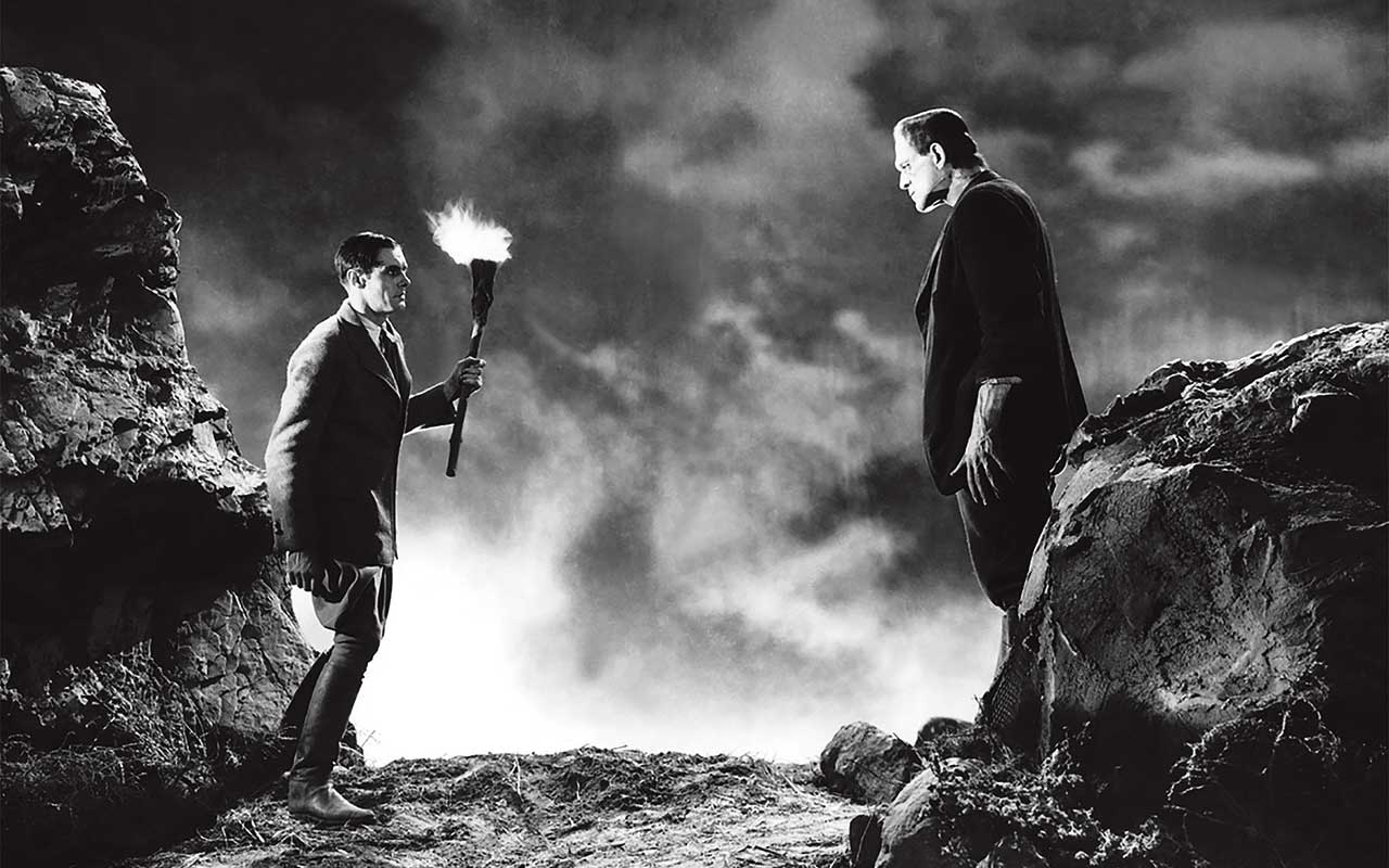 Mit einem solchen Geschöpf konnte auch der erste bahnbrechende Erfolg gefeiert werden – dem Vampir, in der Gestalt von Dracula. Im Gegensatz zu den Produzenten von Murnaus Nosferatu hatte sich Universal mit Florence Stoker bezüglich der Rechte geeinigt. Also konnte Regisseur Tod Browning in Dracula (1931) den titelgebenden Protagonisten – gespielt von dem bereits erwähnten Bela Lugosi – als transsylvanischen Aristokraten mit Lust auf Blut zeichnen, samt dem Namen aus Bram Stokers Roman. Der große Erfolg von Dracula führte bald zu einer Ausweitung der Universal-Monster-Riege. Frankenstein (1931; Regie: James Whale) greift ebenfalls einen Gothic-Fiction-Roman auf, Mary Shelleys „Frankenstein; or The Modern Prometheus“ aus dem Jahr 1818. Englische Literatur des 19. Jahrhunderts erwies sich als formidable Quelle, The Invisible Man (1933), ebenfalls von James Whale in Szene gesetzt, basiert wiederum auf dem gleichnamigen Roman von H. G. Wells, der im selben Jahr veröffentlicht wurde wie Stokers „Dracula“. Boris Karloff, der in Frankenstein die unglückliche Kreatur so markant zu verkörpern verstanden hatte, festigte seinen Ruf mit der Titelrolle in Karl Freunds The Mummy (1932). Zu den größten Erfolgen dieser Ära zählt zweifellos George Waggners The Wolf Man aus dem Jahr 1941. Lon Chaney Jr. spielt die titelgebende Figur, ein weiteres Halbwesen, das mittlerweile aus den Gefilden des Horrorfilms nicht mehr wegzudenken ist.
