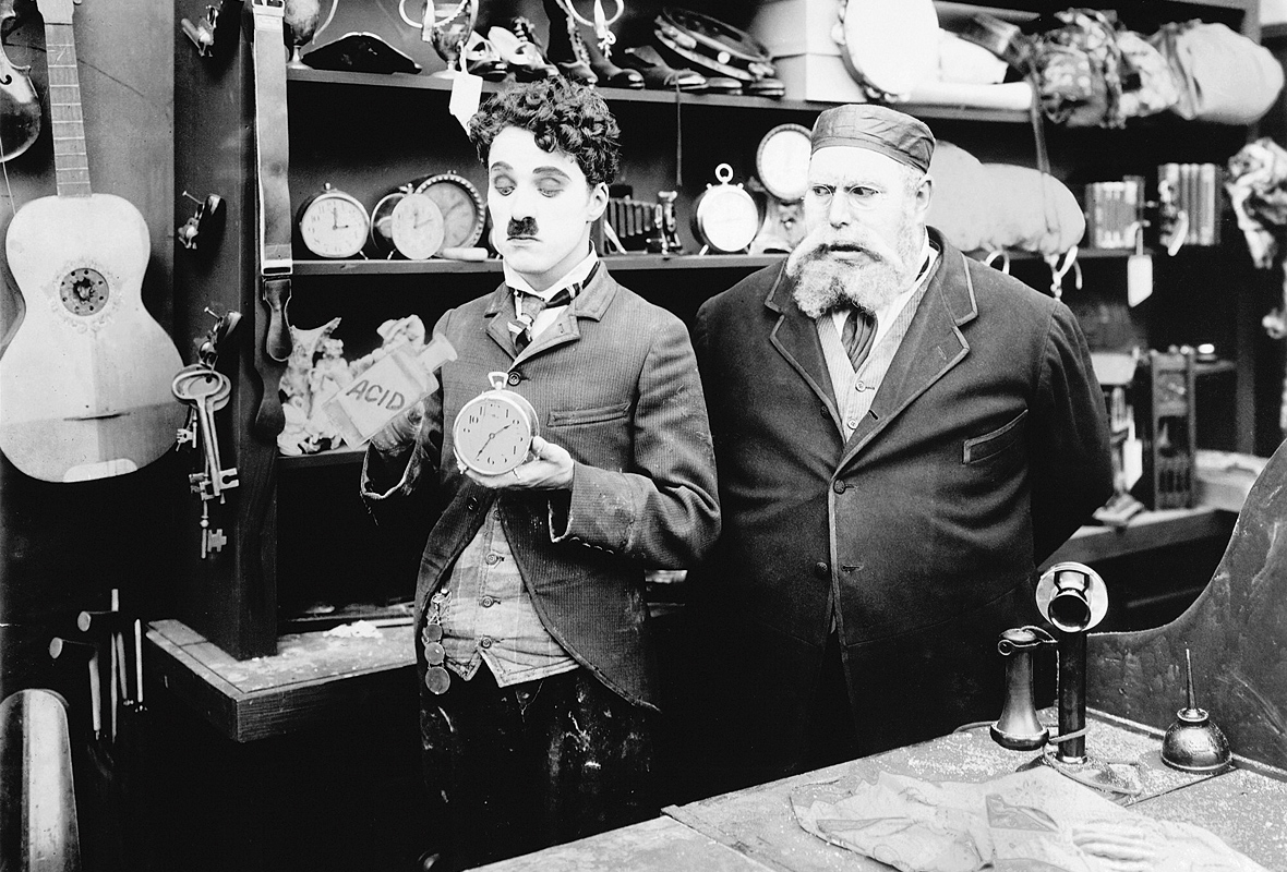 Von dem bereits in frühen Kinotagen legendären Filmkomiker Mack Sennett für dessen Keystone-Studios engagiert, taucht Chaplin im Januar 1914 zum ersten Mal auf der Leinwand auf: Im heute ungewohnten Zylinder, mit nach unten hängendem Schnurrbart, Frack und Monokel gibt er in seiner ersten Filmrolle den dandyhaften Ganoven, steht anderen im Weg herum und macht bereits erste Avancen Richtung Kamera (jedenfalls bildet man sich das im Nachhinein heute ein). Das produktive Chaos, von dem in Zusammenhang mit Keystone – mit seinen berühmten Keystone Kops und Bathing Beauties – oft die Rede ist, entspricht durchaus der Philosophie Sennetts, die auch Chaplins Arbeitsstil entgegenkommt: Es ist die frühe Zeit des lustvollen Ausprobierens auch für den „kleinen Engländer“, wie er von seinen Kollegen gerufen wird. Doch Chaplins Zeit bei Keystone sollte so kurz sein wie sein Aufstieg steil. Bald gesteht ihm Sennett zu, selbst Regie zu führen, und von über 35 Filmen im Jahr 1914 soll Chaplin bereits die letzten 23 inszeniert haben – immer sich selbst natürlich. Zunehmend übernimmt er die Kontrolle über die verschiedenen Arbeitsbereiche, und der Erfolg gibt ihm Recht: Innerhalb weniger Monate erlangt der kleine Mann mit dem Schnauzer Berühmtheit. Auch ein entscheidender Wechsel in der Karriere zeichnet sich ab: Ab Januar 1915 setzt sich Chaplin dank eines Engagements durch die Produktionsfirma Essanay endgültig als Starkomiker durch. Die erste Arbeit für Essanay – gelesen als „S an’ A“ und abgeleitet von den Namen der beiden Produzenten Spoor und Anderson (Letzterer übrigens legendärer Darsteller des Stummfilmcowboys Broncho Billy) – trägt bezeichnenderweise den Titel His New Job: Chaplin bewirbt sich bei einem schwerhörigen Produzenten um eine Rolle beim Film und lässt in der Folge praktisch keine einzige Requisite am Set – von der Säge bis zur Säule – für einen Gag ungenützt.