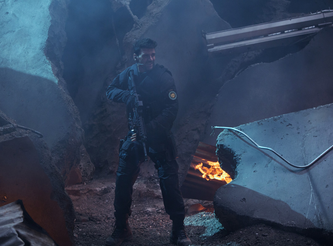 Dass ausgerechnet Captain America: The Winter Soldier der bisher düsterste Film der „Avengers“-Reihe ist (und möglicherweise auch der mit den meisten Leichen, sieht man einmal vom Schaden ab, den New York in The Avengers erleiden musste) ist nur folgerichtig, wird der aufrechte, „museumsreife“ Amerikaner (eine Ausstellung im Smithsonian ist seinem Leben gewidmet) hier doch in einen Kampf gegen Feinde aus den eigenen Reihen geschickt. Diese Thematik wird auch durch den Schauplatz unterstrichen: Bereits zu Beginn wird das berühmte Washington Monument in der amerikanischen Hauptstadt prominent ins Bild gerückt. Beim Joggen rund um das Bauwerk lernt Rogers Sam Wilson