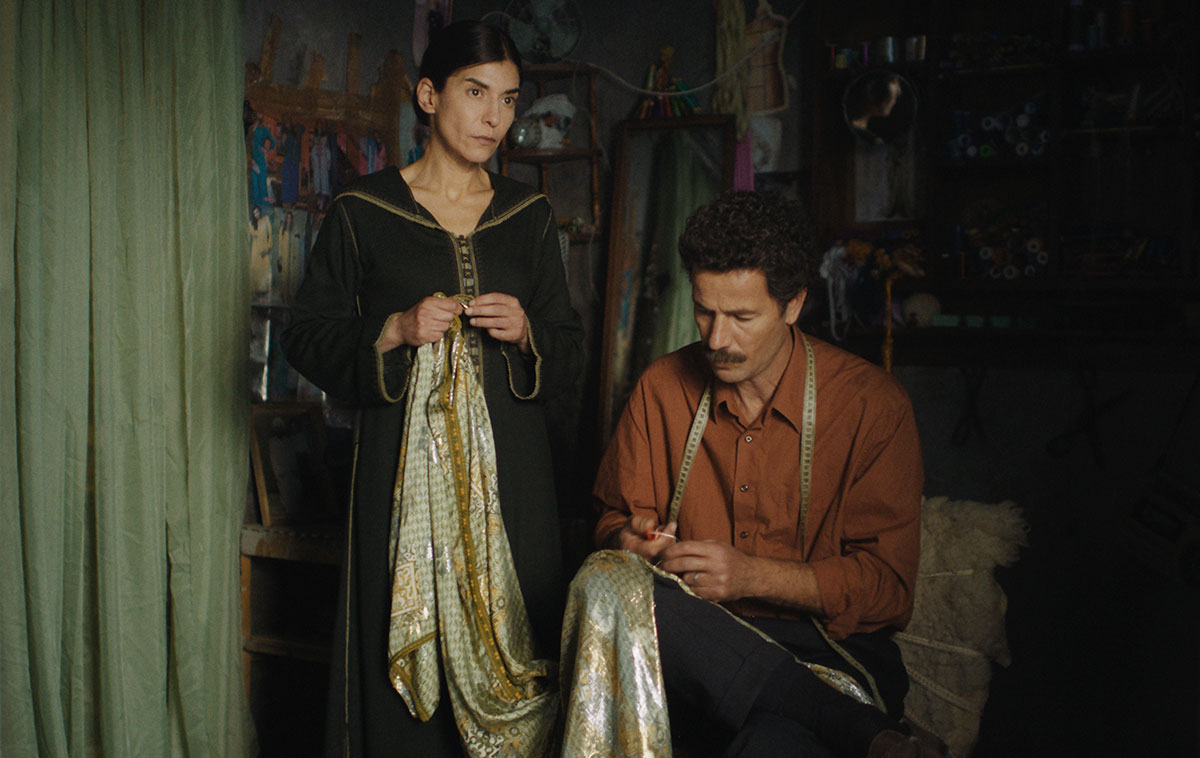 Kräftige Hände, die über einen weichen Seidenstoff gleiten. Satte Farben von Blau und Gold. Die hohe Kunst der Schneiderei hat etwas Sinnliches und Edles an sich, das macht Maryam Touzani in wenigen Bildern gleich zu Beginn ihres neuen Films deutlich. Und die Eleganz, mit der die marokkanische Regisseurin hier am Werk ist, überträgt sie mühelos auch auf die Geschichte, die sie im Anschluss erzählt: Halim (Saleh Bakri) und Mina (Lubna Azabal) führen gemeinsam einen kleinen Kaftan-Laden in Salé in Marokko. Die traditionellen Gewänder, die sie verkaufen, stellen sie mit viel Liebe fürs Detail und in feinster Handarbeit selbst her. Die erstklassige Qualität ihrer Waren hat sich längst herumgesprochen, aber zu zweit kommen sie mit der Arbeit kaum hinterher. Weil Mina zudem noch krank ist und sich schonen muss, stellen sie Youssef (Ayoub Messioui) ein, den Halim jedoch erst anlernen muss. Und wie so oft, wenn ein Dritter in eine fest verwobene Beziehung rückt, treten bald verdrängte Sehnsüchte an die Oberfläche, manchmal nur hervorgerufen durch eine unscheinbare Berührung, eine flüchtige Geste oder die Zartheit eines Blicks.