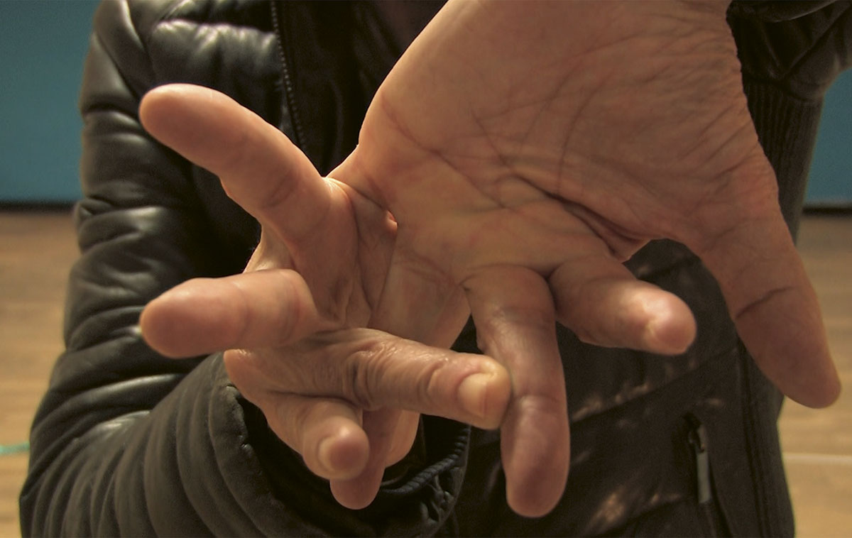 Betrachtet man das bisherige Œuvre von Anča, sind es zwei Ideen, die immer wieder thematisiert werden. Es sind dies die „In-Between-ness“, ein „Dazwischen“, und der „Mental Body“, Begrifflichkeiten, die speziell ausgelegt werden. Dabei meint „Dazwischen“ weniger eine Frage der Identität, des Unvermögens, sich dezidiert für etwas zu entscheiden, als einen Bereich, der immer wieder aufs Neue verhandelt werden muss, fluide nachgerade. Ebenso schwierig zu verbalisieren ist der Mentalkörper, ein Thema, dessen Umsetzung Anča seit längerem beschäftigt. Ihre Überlegungen dazu hat sie in „Eight Notes on Mental Body“ festgehalten – gleichsam eine Anleitung zum Verständnis für die Gesten und Bewegungen, die man beim Betrachten der Videos zu deuten versucht. Es geht um das Sichtbarmachen des Geistes durch körperliches Handeln, oder, wie es gleich zu Beginn der Anmerkungen heißt: „Mein Mentalkörper sucht nach einer Sprache, er sucht nach sprechenden Händen, Hüften, Ohren, Füßen in all ihren Wiedererscheinungen. Seine Grammatik ist konkav und konvex, die Gestik ist Syntax.“