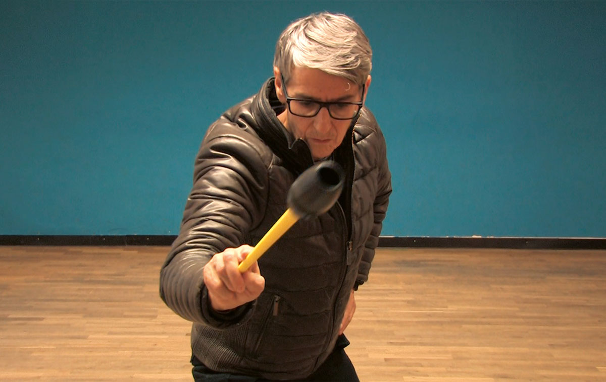 Im letzten Raum der Galerie bilden vier große Bildschirme die Installation So One and So Mine II (2022), in der Anča mit Gerätschaften, die man von der Gymnastik kennt, vor der Kamera agiert. Es sind dies präzise, konzentrierte Bewegungen, mit denen Anča ihren Körper intuitiv sprechen lässt. Davor wurde alles notiert, danach penibel analysiert. Entstanden ist die Arbeit für die von Ruth Noack kuratierte Gruppenschau „The Mental Body“ im Ausstellungsraum The Corner at Whitman-Walker in Washington, in dessen Nachfeld Anča mit allen Beteiligten für den Wiener Katalog über die gezeigten Arbeiten und Positionen kommunizierte. Die Lektüre dieser verbalisierten Reflexionen über die eigene Kunst hilft maßgeblich, sich diesem Werk, in dem lange gesucht, viel verhandelt und präzise ausgeführt wird, anzunähern. Es sind dies, so lässt sich feststellen, keine Arbeiten, die schnell zu rezipieren sind. Doch lässt man sich darauf ein und folgt den subtilen Anleitungen, lässt sich eine Verbindung herstellen, lässt sich das Konvex und Konkav der Grammatik und die Syntax der Gestik lesen. Und, wie es Ruth Noack auf den Punkt bringt: Der Rhythmus hilft auch.