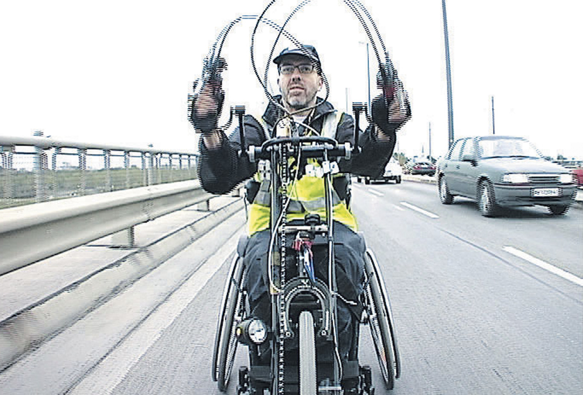Der Tiroler Martin Bruch ist seit 1998 als Handbike-Fahrer unterwegs, täglich, bei jeder Witterung. 16.000 Kilometer hatte er bereits abgespult, meist zwischen geschlossenen Fahrzeugen mit kaum erkennbaren Insassen hinter spiegelnden Scheiben, als er für sein handbikemovie 2004 den großen Diagonale-Filmpreis erhielt. Bruch über seine Erfahrung der Welt: „Als langsamer Teilnehmer, besonders bei Steigungen, aber fast gleich schnell bei abschüssigen Strecken erlebe ich die Straße – eine Berg- und Talfahrt – schweigend, einsam, isoliert und amüsiert. Die Perspektive beim Handbike-Fahren, im Freien sitzend, ist ungewöhnlich, für mich aber normal.“