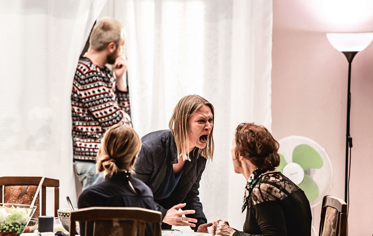 Aber warum ist das Thema Fehlgeburt so tabuisiert? Im Kontext aktueller politischer Kämpfe ist die Frage gerade vor dem Hintergrund der regionalen Ansiedlung von Pieces of a Woman interessant. Die polnische Produktion spielt im heutigen Warschau, und bildet damit einen Schauplatz, der – seitdem inPolen 2015 eine Rechts-Außen-Regierung an die Macht gekommenen ist – einen tief konservativen Beigeschmack trägt. Während man deshalb in den letzten Jahren aus Polen vermehrt öffentliches Aufbegehren gegen die sehr strengen Abtreibungsgesetze wahrnimmt, beleuchtet das Stück die andere Negativ-Kehrseite dieser misogynen Politik. Gemeint ist das Bild einer Frau, der man auch dann noch, nachdem sie in der Ausführung ihrer „natürlichen“ Aufgabe bereits „gescheitert“ ist, das Recht auf Selbstbestimmung nehmen will. Jene konservativen Ideologien werden in Pieces of a Woman zum Zentrum der innerfamiliären Konflikte: Der Streit, der um die Tragödie des Kindestodes entfacht, ist eigentlich das Ausfechten ganz aktueller politischer Grabenkämpfe in Polen. Doch während alle Beteiligten auf ihre Weise leiden, bleibt die am meisten unter Druck Gesetzte jene, die am stärksten gelitten hat: Maja, die Mutter des toten Kindes. Während auf ihrem Rücken also Fragen um Schuld (Wieso musste das Kind sterben?) und Generationenkonflikte (Was hätte die Mutter besser machen können?) ausgetragen werden, besteht die Protagonistin stur auf das Recht ihrer ganz persönlichen Trauer: „Meine Muschi und mein Fötus gehen dich nichts an.“