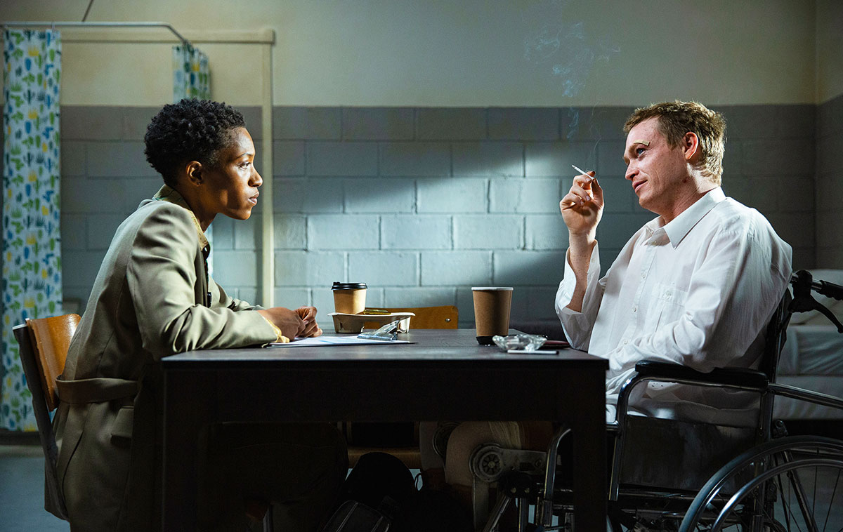 So erzählt es Doug, als er in Untersuchungshaft der Psychiaterin Evelyn (Jojo T. Gibbs) über seine Vorgeschichte ausgefragt wird. Warum er festgenommen wurde, ist zu dem Zeitpunkt noch unklar. Aber eines steht fest: Douglas ist ein Geschundener, eine gebrochene Seele, der allein gegen den Rest der Welt steht und ähnlich wie der mental labile Clownsdarsteller Arthur Fleck in Todd Phillips’ Joker (2019) Selbstjustiz an seiner Umwelt ausübt.