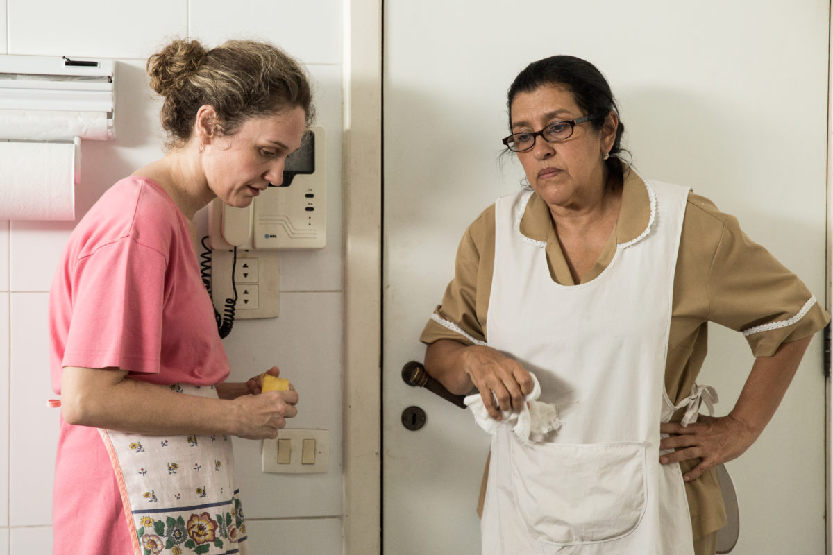Als Jessica sich bei Val anmeldet, weil sie demnächst ein Studium in São Paolo beginnen will, gerät die Hausgemeinschaft, aus dem Gleichgewicht. Die muntere junge Frau ist nicht bereit, sich dem bisher unstrittigen Reglement zu unterwerfen, in dem es vor allem um die Rechte und Pflichten des Personals geht. Zum Entsetzen nicht nur Vals bricht Jessica fortwährend die ungeschriebenen Gesetze. Außerdem muss Val, die Fabinho tröstet, wenn er Liebeskummer hat und ihn in den Schlaf krault, feststellen, dass ihre Tochter ein eher kühles Verhältnis zu ihr hat. Wie aber Val ihrem Unmut Luft macht, wie sie grummelnd ihren Pflichten nachkommt, wie sie die ihr fremd gewordene Tochter hinter deren Rücken nachäfft, wie sie hin- und hergerissen ist zwischen Stolz auf das selbstbewusste Geschöpf und Scham über deren Ansprüche und Attitüden, das veranschaulicht Regina Casé in einer großartigen Performance. Das Multitalent ist in Brasilien seit den 1970ern als Theater-, Film- und Fernsehseriendarstellerin präsent und beherrscht souverän alle Varianten des Komischen – von subtiler Ironie bis zum groben Slapstick. Der Sommer mit Mamã ist vollkommen auf Casé zugeschnitten, trotzdem kann man nicht genug von ihr kriegen, das fand auch das Publikum der letzten Berlinale, das den Film um die resolute, warmherzige, konservative und unglaublich witzige Sechzigerin Val zum Lieblingsfilm in der Sektion Panorama wählte.