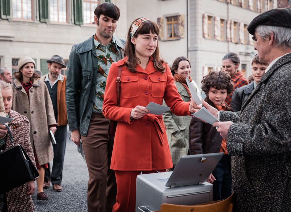 Appenzell, Schweiz, Anfang der siebziger Jahre. Nora Ruckstuhl hat einen Ehemann, zwei Kinder und einen grantig-machoiden Schwiegervater zu versorgen. Sie ist ein ehrlicher Mensch mit einem ausgeprägten Sinn für Gerechtigkeit, aber im Grunde brav und harmoniebedürftig. Vom Typus her ist Nora (sympathisch und variabel: Marie Leuenberger als Speerspitze eines starken weiblichen Casts) nicht unbedingt eine Revoluzzerin. Dass sie als Frau nicht an die Wahlurne darf, stört sie eigentlich nicht. 68er-Gedankengut, Hippietum, Feminismus und sexuelle Befreiungsbewegung, welche in einer hübschen Einstiegs-Collage den Ton des Films anstimmen, haben ihr konservatives kleines Heimatdorf bislang nicht erreicht. Es sind zwei Dinge, die Nora stören und im Verlauf des Films denn auch politisieren: Erstens, wie unfair mit ihrer rebellischen Nichte Hanna umgegangen wird. Anfangs als „Dorfmatratze“ verunglimpft, landet die gegen ihren überforderten Vater (Nicholas Ofczarek) aufbegehrende Hanna nämlich in den Mühlen administrativer Verwahrung. Zweitens darf Nora, gelangweilt von der ewig gleichen Hausarbeit, gegen den Willen ihres Ehemanns keine Arbeit annehmen. Nun ist ihr Gemahl Hans (Max Simonischek) zwar ein guter und auch ein lieber Mann, aber trotzdem will er es ihr nicht erlauben: Was würden seine Arbeitskollegen in der Tischlerei davon halten, dass seine Frau dazuverdienen muss? Nein, die „göttliche Ordnung“ muss eingehalten werden – Männer schaffen an, Frauen folgen. „Dann mach ich dir eben noch ein Kind, damit dir nicht langweilig ist“, sagt Hans. So wird Nora allmählich in die Rolle der Anführerin einer örtlichen Frauenrechts-Kampagne gedrängt, ohne das eigentlich zu wollen. In der großen Stadt indes greifen längst Frauenmärsche und sexuelle Selbsterweckungsseminare (geleitet von der fabelhaften Die Brücke-Kommissarin Sofia Helin!) Platz.