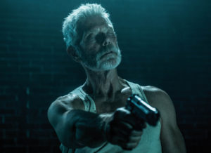 Die Prämisse ist simpel. Drei junge Hobby-Diebe (Jane Levy, Dylan Minnette und Daniel Zovatto) wollen ihre triste Existenz in Detroit für grünere Weiden in Kalifornien verlassen. Ein letzter großer Coup soll das ermöglichen. In der Gegend wohnt ein blinder Militärveteran, der auf einem Haufen Geld hockt, das ihm nach einem Unfall, der seine Tochter getötet hat, zugesprochen wurde. Der Mann ist blind, wie schwer kann es also sein, sich hinein- und hinauszuschleichen, wenn er schläft? Aber als die Teenager dort auftauchen, gehen die Dinge sofort schief, und der Mann im Haus, der einen offenkundig hungrigen Rottweiler besitzt, ist nicht ganz so hilflos. So wie auch Macaulay Culkin in Kevin – Allein zu Haus (Home Alone) kennt er sein Haus schließlich am besten. Während die Eindringlinge sich also in Schränken verstecken und versuchen, ihre Schreie zu unterdrücken, jagt der Hauseigentümer sie von einem Raum in den anderen, und es stellt sich heraus: Das ist weitaus beunruhigender zu beobachten als dauerndes Kreischen. Die Details sollten an dieser Stelle ungenannt bleiben, aber es soll erwähnt werden, dass es einen zutiefst unangenehmen Moment gibt, der die Baum-vergewaltigt-Frau-Szene in The Evil Dead fast in den Schatten stellt.