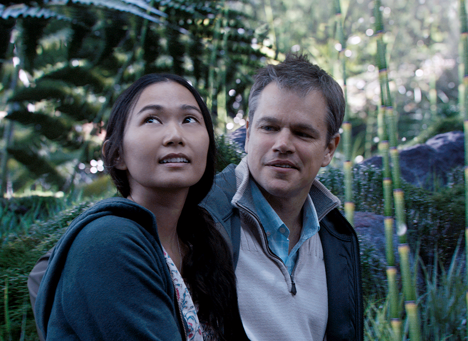 Damon spielt den ewigen Verlierer Paul Safranek, der schon in der normalen Welt regelmäßig von den äußeren Umständen in die Knie gezwungen wird. Dabei hätte aus ihm eigentlich ein erfolgreicher Mediziner werden können, wäre nicht die Krankheit seiner Mutter dazwischen gekommen, die ihn zunächst seine Freiheit und schließlich die Karriere kosten sollte. Geblieben ist ein Job als Ergotherapeut im Schlachthof, den Paul mit aufrichtiger Inbrunst ausübt, gekoppelt an ein bescheidenes Mittelstandsleben in Omaha, Nebraska, dass er mit seiner Frau Audrey (Kristen Wiig) teilt, die ihrerseits jedoch davon träumt, das Familienhaus der Safraneks endlich gegen ein neues, schickes Eigenheim eintauschen zu können. Als das Ehepaar erfährt, dass auch Freunde von ihnen sich bereits haben verkleinern lassen, um im Miniaturformat ein erfüllteres, sorgenfreies und vor allem luxuriöses Dasein zu führen, beschließen auch sie, den Schritt zu wagen und als Zwerge nach „Leisureland“ in den Wohlstand zu ziehen. Doch als Paul nach der aufwendigen Schrumpfungsprozedur aufwacht, ist Audrey plötzlich nicht mehr an seiner Seite und auch sonst alles anders als geplant.