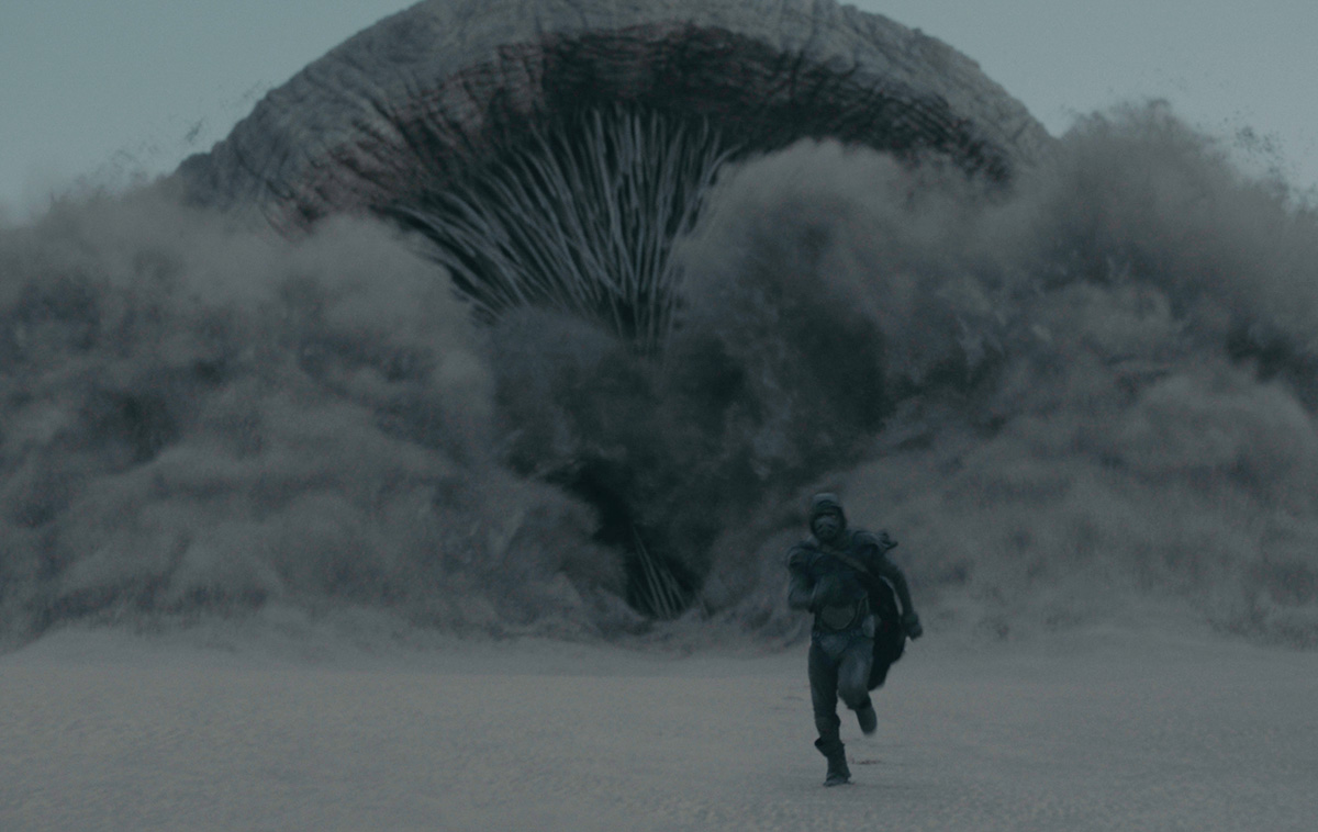 Denn natürlich geht es in Dune nicht, zumindest nicht vordergründig, um feine darstellerische Leistungen, obwohl diese bis in die Nebenrollen hervorragend sind. Es geht um imposante Sandwürmer, kolossale Actionszenen und technische Perfektion, die Villeneuve in jeder Einstellung zelebriert. Oft hat man den Eindruck, der virtuose Frankokanadier hat aus seiner durchwachsenen Erfahrung mit Blade Runner 2049 gelernt und gemeinsam mit dem deutschen Spezialeffekt-Künstler Gerd Nefzer, der ebenfalls bereits an dem Vorgänger beteiligt war, alles überflüssige, allzu bombastische Drumherum entfernt, um die Essenz der Gewaltigkeit und die Faszination für die Wunder der futuristischen Wüstenwelt in den Vordergrund zu rücken, die Hans Zimmer erwartungsgemäß mit einem perfekt bedrohlichen Score unterlegt.