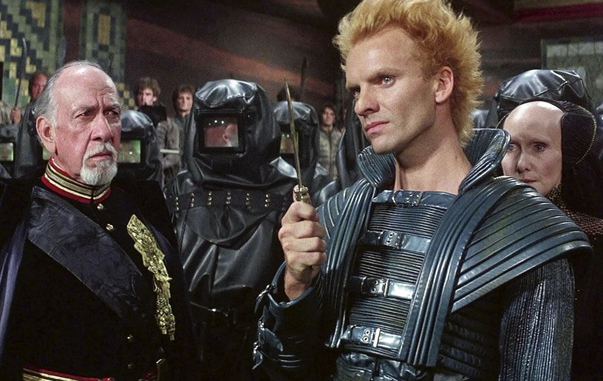 Kommen wir zur italienischen Produzenten-Legende Dino De Laurentiis (1919–2010), der, vom Star Wars-Erfolg (1977) inspiriert, selbst im Science-Fiction-Genre mitmischen wollte. Nachdem Flash Gordon (1980) finanziell unter den Erwartungen geblieben war (die „Flash Gordon“-Comics hatten ebenso wie „Dune“ und Tolkiens „Lord of the Rings“ wiederum enormen Einfluss auf Lucas’ Star Wars ausgeübt), wollte De Laurentiis „Dune“ zunächst mit Regisseur Ridley Scott umsetzen. Geplant waren zwei Filme (Scott zum Drehbuch: „I felt it was a decent distillation of Frank Herbert’s book“), doch das Projekt zerschlug sich, da Scotts älterer Bruder unerwartet verstarb. Schließlich wagte De Laurentiis es mit David Lynch, der mit The Elephant Man (1980) einen künstlerischen Welterfolg gefeiert hatte und für Dune gar die Regie zum dritten Star Wars-Film, The Return of the Jedi, ablehnte. Die Dreharbeiten waren jedenfalls eher schwierig, da Lynch größere Freiheiten gewohnt war. Die Roman-Handlung der Kinofassung wurde auf ingesamt 137 Minuten kondensiert; von späteren Extended Cuts distanzierte sich Lynch, und einen Director’s Cut lehnte er bislang ab. Angesichts dieser Komprimierung wurden in US-Kinos Handouts mit den Namen der Protagonisten verteilt, um dem Publikum den Überblick zu erleichtern. Kyle MacLachlan, Darsteller des Paul, meinte, dass er nach rund 60 Seiten vorbereitender Romanlektüre wieder von vorn begonnen habe, um sich einen Überblick zu Personen und Geschehen zu verschaffen.