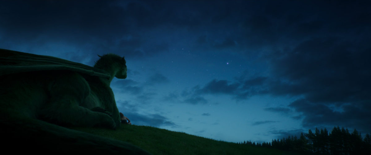 Anders als im Original ist Pete (Oakes Fegley) in der Neuauflage kein Waise, sondern verliert seine Eltern bei einem Autounfall. In einem nahe gelegenen Wald findet er Zuflucht bei einem liebenswürdigen Drachen, den er Elliot nennt – man denke an Fuchur aus der Unendlichen Geschichte, aber eben moosgrün. Gemeinsam schlafen sie in einer Baumhöhle, während sie ihre Tage damit verbringen, durch Wolken zu fliegen und Verstecken zu spielen. Sechs Jahre später, es muss so kommen, werden die beiden von einer hilfsbereiten Försterin (Bryce Dallas Howard), deren Tochter (Oona Laurence), ihrem Vater (Robert Redford) und einem bösen Holzfäller (Karl Urban) entdeckt. Domestizierung, Trennungsschmerz und Belehrungen über die Bedeutsamkeit von Kernfamilie und Natur folgen.