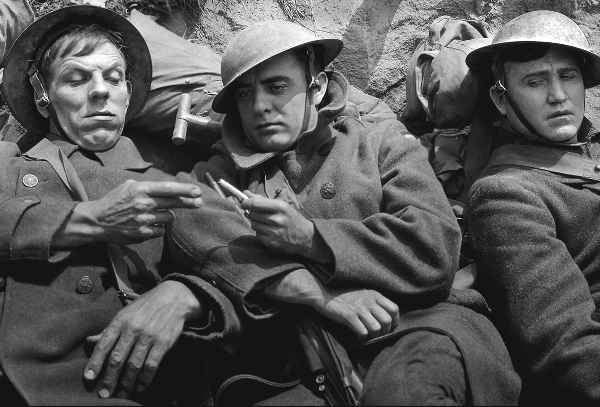 Nachdem es in den USA während des Krieges eine Menge an filmischer Mobilmachung („reel patriotism“) gegeben hatte, folgten nunmehr spektakuläre Fliegerfilme und ein paar bedeutende entheroisierende Werke über das Fronterlebnis jener „Urkatastrophe“ des 20. Jahrhunderts. In seiner Betrachtung über den Ersten Weltkrieg im amerikanischen Film hat sich Horst Tonn vor allem auf Stanley Kubricks Paths of Glory (1957) und Dalton Trumbos Johnny Got His Gun (1971) konzentriert, an denen sich antimilitaristische Positionen reflektieren ließen, woran am Beispiel des alliierten Einsatzes gegen Hitlers Okkupationsarmee selbstverständlich nicht zu denken war. Beiden Filmen, ob am Film noir oder am literarischen Drama orientiert, geht es um zentrale Paradigmen des modernen Krieges, die Zerstörungsmaschinerie, das hierarchische System und seine eigene verhängnisvolle Logik.