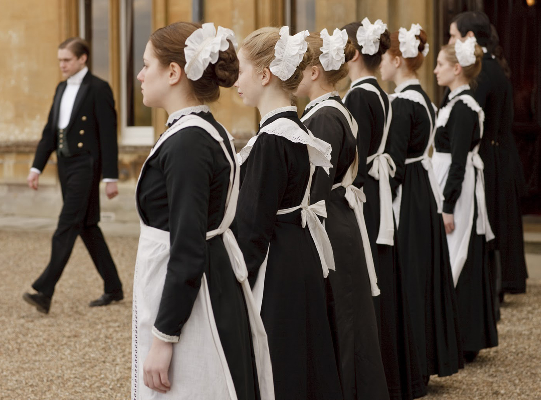 Begonnen hat alles mit einer anderen europäischen Katastrophe: Gewissenhaft bügelt William, der junge Diener, an einem Morgen im April 1912 die Zeitung auf, damit der Herr des Hauses sich beim Frühstück die Finger nicht mit Druckerschwärze beschmutzt, während die Zofen schon aufgeregt von der Katastrophe tuscheln. Doch erst upstairs, im eleganten Breakfast Room, werden die Folgen des Unglücks ausgesprochen: Die Titanic, das unsinkbare Hochgeschwindigkeitsschiff, ist gesunken – und mit ihm die beiden Erben von Downton Abbey. Was den Earl of Grantham und seine drei heiratsreifen Töchter vor die unerfreuliche Aussicht stellt, das prachtvolle Anwesen samt der darin investierten Mitgift seiner amerikanischen Ehefrau Cora perspektivisch Matthew Crawley, einem entfernten Cousin und mittellosen Anwalt aus Manchester überlassen zu müssen.