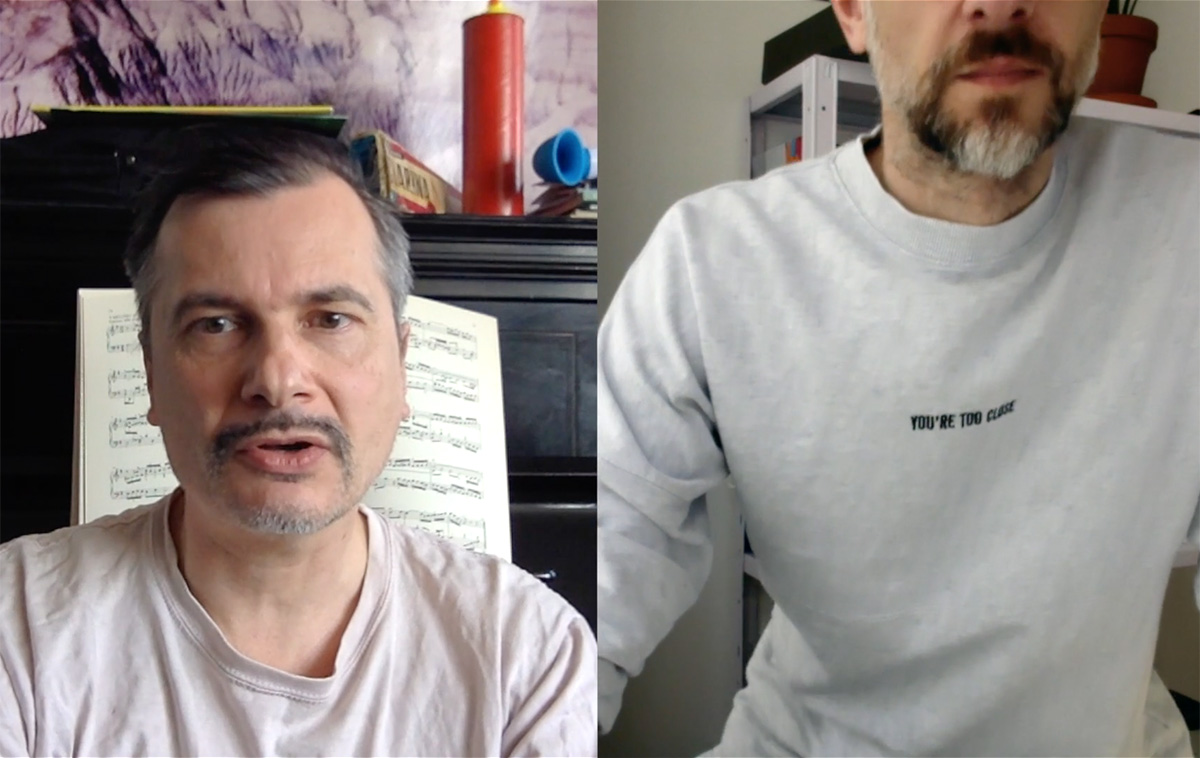 Einen Einblick in ihre Kreativwerkstatt geben Andreas Reihse (Künstler, Musiker und eines der Gründungsmitglieder der Musikgruppe Kreidler) und Zaza Rusadze (Videokünstler): In ihrem Videodialog (eines der Corona-Benchmarks schlechthin; Dauer: 9:07 Minuten) geht es um die Überlegungen, die hinter dem Musikvideo zur Kreidler-Nummer „Eurydike“ stehen. Wie Musik in visuelle Formen übertragen wird, kann man in den eigenen Worten der sympathischen Protagonisten mitverfolgen, zur weiteren Illustration dienen Splitscreens und der Einsatz von Primärfarben.