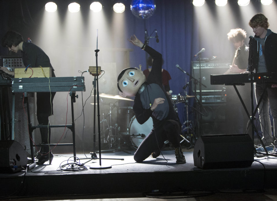 Im Zentrum der Soronprfbs steht Frank (Michael Fassbender), der – halb Sektenführer, halb Prophet – zu jedem Zeitpunkt einen großen Pappmaschee-Kopf trägt. Die anderen Bandmitglieder, insbesondere die Theremin-Spielerin Clara (Magie Gyllenhaal), verschmähen Jon als Scharlatan, aber Frank bestärkt ihn zu bleiben. Der Film folgt von hier an Jons Jahr mit der Gruppe und wie sie in einer Waldhütte ihr erstes Album aufnehmen (sehr eindrucksvoll: die Musik von Stephen Rennicks wurde von den Schauspielern live eingespielt). „Wir sollten ein ganzes Album aus diesem Sound machen“, murmelt Frank, während er eine Tür auf- und zuschließt. In einer anderen Szene komponiert er ein Ständchen an ein Stück Garn, das aus einer Decke ragt. Ja, die Musik der Soronprfbs scheint nicht für fremde Ohren bestimmt, doch während die Band glücklich in ihrer Anonymität schwelgt und Vogelschreie imitiert, schmiedet Jon große Pläne und dokumentiert alles heimlich auf YouTube. Er ist überzeugt davon, dass Franks Wahnsinn und Begabung eins sind: „Miserable childhood, mental illness … How do I find that sort of inspiration?“ Doch allmählich offenbart Frank, dass seine Titelfigur womöglich nicht exzentrisch, sondern psychisch beschädigt ist, und Jons Verbissenheit auf Popularität kollidiert mit dem Wunsch der Band nach künstlerischer Integrität.
