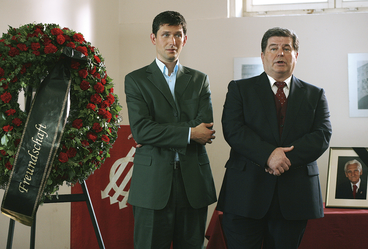 Die Internationale ist erstes akustisches Signal: Hier geht`s um politische Gesinnung und alte Sozis – mit Betonung auf alt. Mit einer Hymne auf die Sozialdemokratie hat das nichts zu tun. Dieser Trauermarsch, punktuiert von Mnozil-Brass-Gebläse, versetzt einen, aber leider nur sehr kurz, gefühlsmäßig ein wenig in die Stimmung eines verfilmten Polt-Krimis, in denen Erwin Steinhauer ziemlich authentisch einen Landgendarmen spielt. Mit derselben Authentizität überzeugt Steinhauer ja auch als Rechtsaußen-Nationalrat in Ernst Hinterbergers Trautmann-Krimis (Weitere Trautmann-Drehbücher liegen übrigens in der Schublade, allein das Signal zum Produktionsbeginn lässt wegen der regelmäßig vor Intendantenwahlen wiederkehrenden Entscheidungsträgheit auf sich warten). Damit sind wir auch schon mitten drin im Thema, das dem dialogisch und textlich gelungenen Bühnenstück zugrunde liegt: Freund(erlwirt)schaft. So meint Vater Schober im Disput mit seinem Sohn über die Umfärbetendenzen des wichtigsten Fernsehsenders im Land: „Na geh, ich find die ZIB 1 wirklich objektiv, die bringen nicht nur die Meinung von Wolfgang Schüssel, die bringen auch die Meinung eines Intellektuellen aus der Opposition: die von Erwin Pröll.“