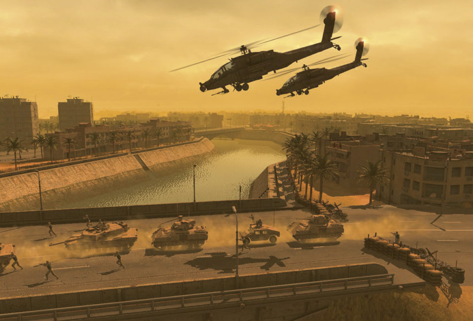 Überhaupt gilt das Genre der Kriegsspiele als hervorragender Katalysator, um bestimmte Weltanschauungen zu verbreiten. Ähnlich wie in frühen James-Bond-Filmen der sowjetische Kommunist als Bösewicht herhalten musste, verschreiben sich viele Computerspiele dem Kampf gegen Terrorismus. Einige davon, wie etwa Full Spectrum Warrior oder First to Fight tragen sogar stolz das Siegel, als kommerzielles Abfallprodukt offizieller Militär-Trainingswerkzeuge zu gelten. Somit wird ohne jegliches Zutun politischer Organisationen ein einseitiges Bild des Nahen Ostens verbreitet.