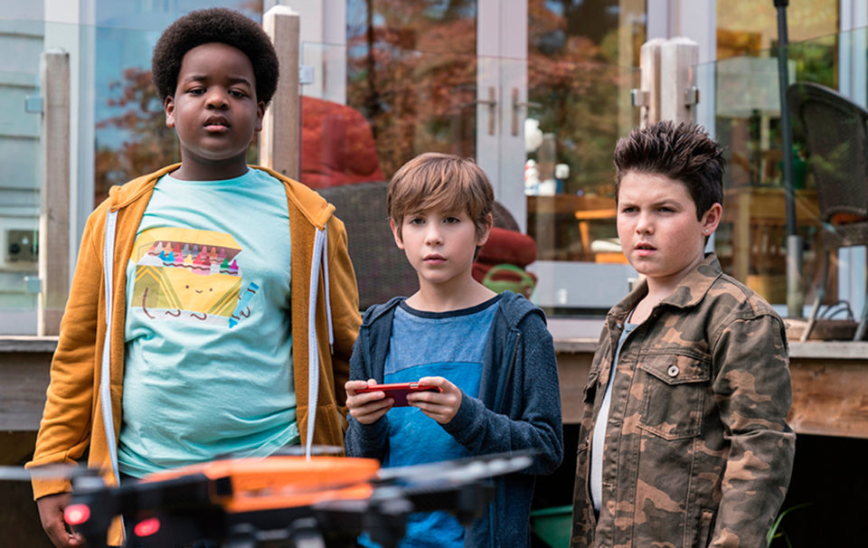 Wie auch immer: Der Erfolg gibt dem Erfolgsgaranten Seth Rogen Recht: Schon in den ersten vier Kino-Tagen hat der bescheiden produzierte Film seine Kosten (20 Mio. Dollar) locker eingespielt, und das trotz eines nahezu unbekannten Casts – sieht man natürlich von Jacob Tremblay ab, der 2015 mit Brie Larson im Oscar-gekrönten Room und später neben Julia Roberts und Owen Wilson im Filmwunder Wonder zu sehen war. Die Handlung ist ebenso schlicht wie schnell erzählt: Max (Tremblay), Thor und Lucas, drei Zwölfjährige, die dickste Freunde sind, wollen sich auf ihre erste „Kissing Party“ (was es alles gibt!) vorbereiten. Max lässt sich überreden, mit Hilfe der Drohne seines Vaters, die zu benützen ihm streng verboten ist, zwei benachbarte ältere Teenie-Girls auszuspionieren, um zu sehen, wie Küssen geht. Doch natürlich geht alles schief, die Drohne ist kaputt und muss ersetzt werden, bevor Maxens Vater zurückkehrt. Um das Geld zur Wiederbeschaffung des Fluggeräts zusammenzubekommen, verkaufen sie das Sex-Spielzeug von Thors Eltern, handeln mit Drogen, überqueren eine achtspurige Autobahn und dergleichen mehr.