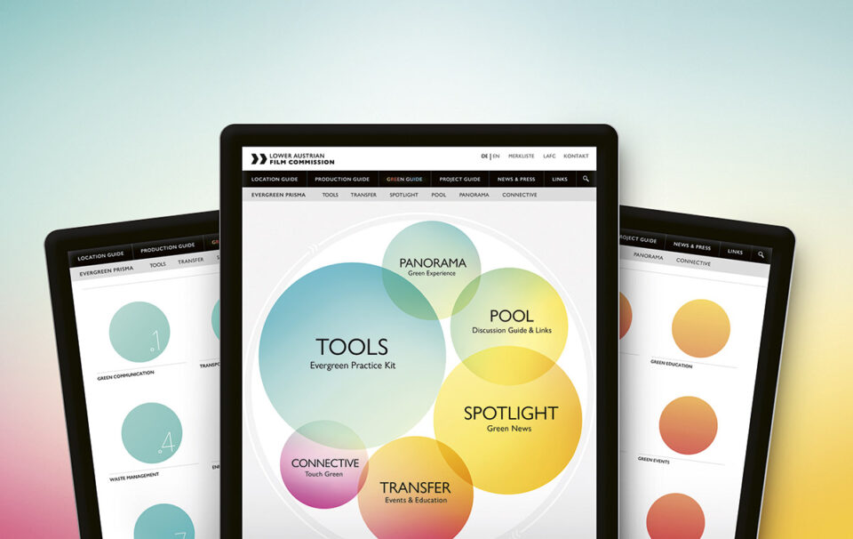 Das „Kerngeschäft“ der 2012 gegründeten LAFC ist es, national und international den Filmstandort Niederösterreich zu präsentieren, wo, wie man weiß, für Kultur- und/oder Wirtschaftsförderung einiges an Geldmitteln zur Verfügung steht. Wer sich auf der Website www.lafc.at umsieht, kann erkennen, dass in den neun Jahren seither auch auf dem klassischen Feld der Betreuung von Filmproduktionen ganze Arbeit geleistet wurde. Eine umfassende Datenbank mit Motiven, Ressourcen, Kontakten, aktiven und abgeschlossenen Projekten, dazu eine ausführliche Sammlung weiterführender Links und noch vieles mehr ist da zu finden; doch damit nicht genug: Seit Jänner 2020 (siehe auch das aus diesem Anlass erschienene „ray“-Sonderheft) steht das sogenannte „Evergreen Prisma“ auf der Website. Es wurde bei der Österreichischen Filmpreis-Gala 2020 in Grafenegg, die sich an diesem Abend „grün“ gab, präsentiert und stellt, ständig wachsend, eine der größten und umfassendsten Sammlungen alternativer Ressourcen im Filmbereich dar, die es derzeit in Europa gibt – eine einzigartige Wissensdatenbank.
