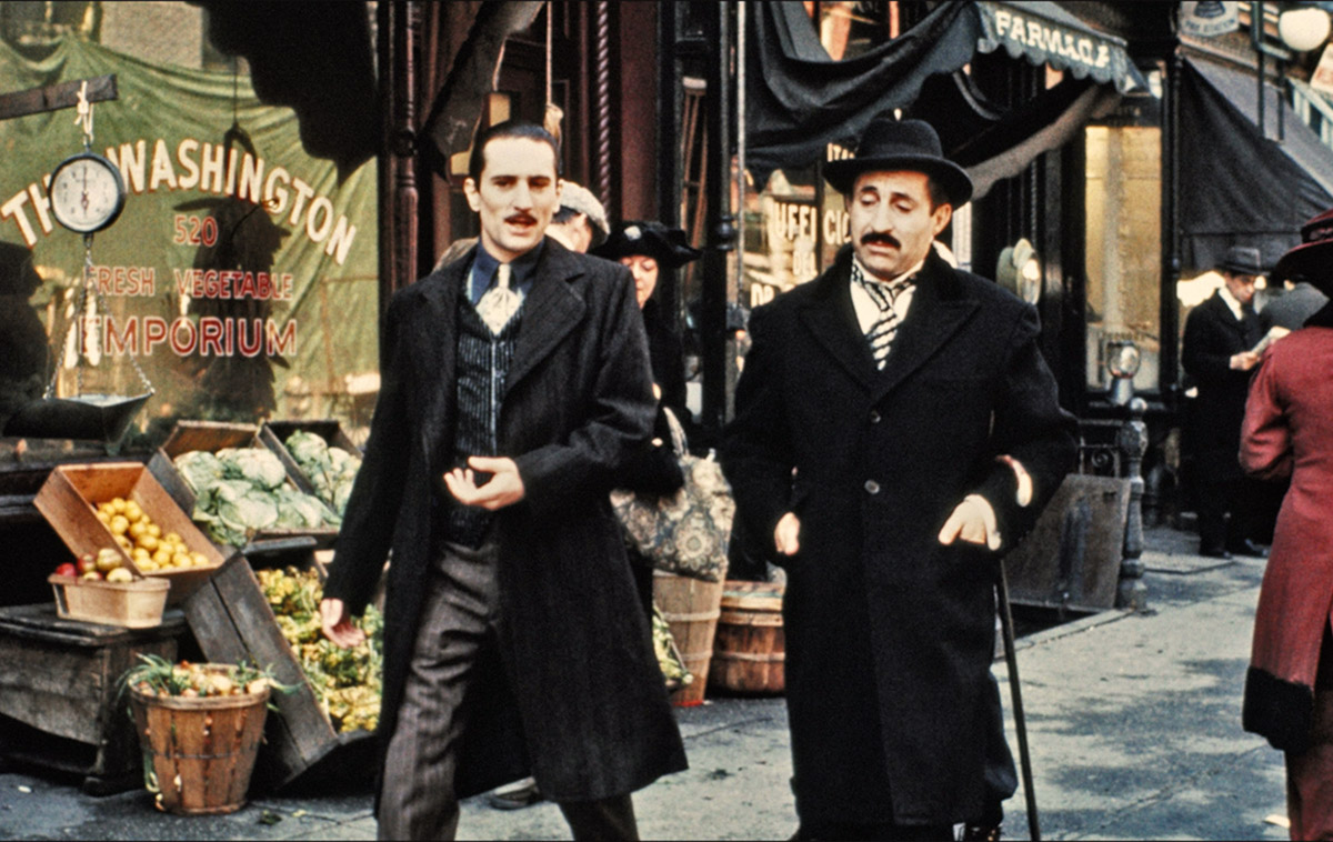 Der Typus des Italieners auf der Leinwand ist im US-Film stark mit dem Italoamerikaner De Niro assoziiert, aus dessen Mund Sätze wie „Somebody messes with me, I’m gonna mess with him“ die gewaltigsten Mafioso-Drohgebärden im Hollywoodkino hinterließen, so zu hören in The Untouchables (Brian De Palma, 1987), als er den Italoamerikaner Al Capone in grandioser Anverwandlung, fettleibig und kahl, von atemberaubender fleischgewordener Vulgarität verkörperte. Immer wieder zeigt De Niro, was es heißt, als Italiener in New York, überhaupt in den USA zu leben, sämtliche Stadien der italienischen Einwanderungswellen in die Neue Welt werden in seinen Filmen ablesbar. In Idiom und Stimme kann er seine eigene Herkunft von der Straße aktivieren, ein „street kid“, das es zu etwas gebracht hat.