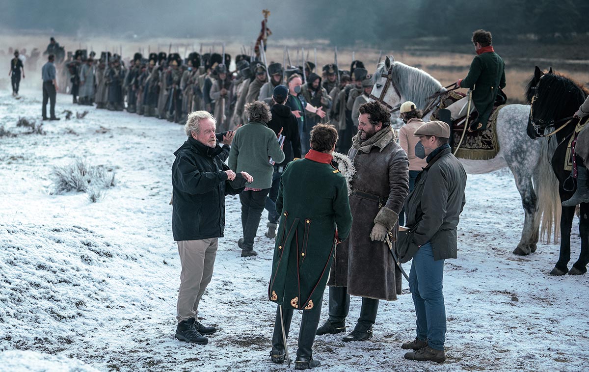 Ridley Scott und Drehbuchautor David Scarpa rücken dabei wiederholt große Schlachten als jene Pfeiler, die diesen Weg markieren, ins Zentrum. Geschichtsträchtige Orte wie Austerlitz, Borodino inmitten des Russlandfeldzugs und natürlich Waterloo nehmen dabei breiten Raum ein. Scott setzt diese Sequenzen mit einer visuellen Wucht – und hohem CGI-Aufwand – in Szene, die streckenweise eine geradezu immersive Erfahrung generiert. Mit all seiner technischen und formalen Virtuosität verweist Scotts Inszenierung jedoch auch immer wieder mittels eindringlicher Bilder darauf, dass das Ganze auch – und vor allem – ein Schlachten von unsäglicher Brutalität ist.