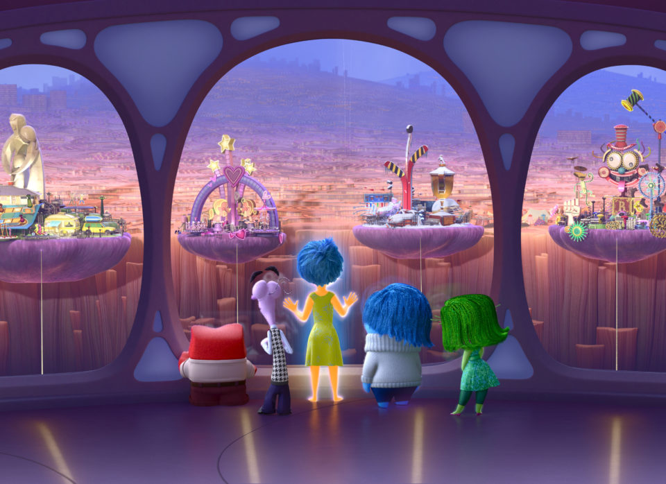 Es benötigt eine besondere Art von Phantasten, um den Unterhaltungswert in, sagen wir, einer Montage über das Ende einer liebevollen Ehe (Up), einer stillen Meditation von Einsamkeit in einem Roboter (Wall-E) oder dem Ende der Kindheit (Inside Out) zu sehen, aber Pixar gelingt es, vermeintlich nicht marktgerechte Konzepte nicht nur wirtschaftlich profitabel, sondern auch urkomisch und emotional wie visuell anspruchsvoll zu gestalten. Inside Out spielt fast vollständig innerhalb einer theoretischen Welt. Die größten Lacher kommen, wenn wir Rileys Kopf verlassen und Einblick in die Hirnzentralen anderer bekommen (unbedingt sitzen bleiben für den Abspann!). Es zeigt sehr schön, warum Docter und der Rest von Pixars Kernkreativen sich den „Brain Trust“ nennen. Wir befinden uns inmitten eines Freud’schen Psychodramas.