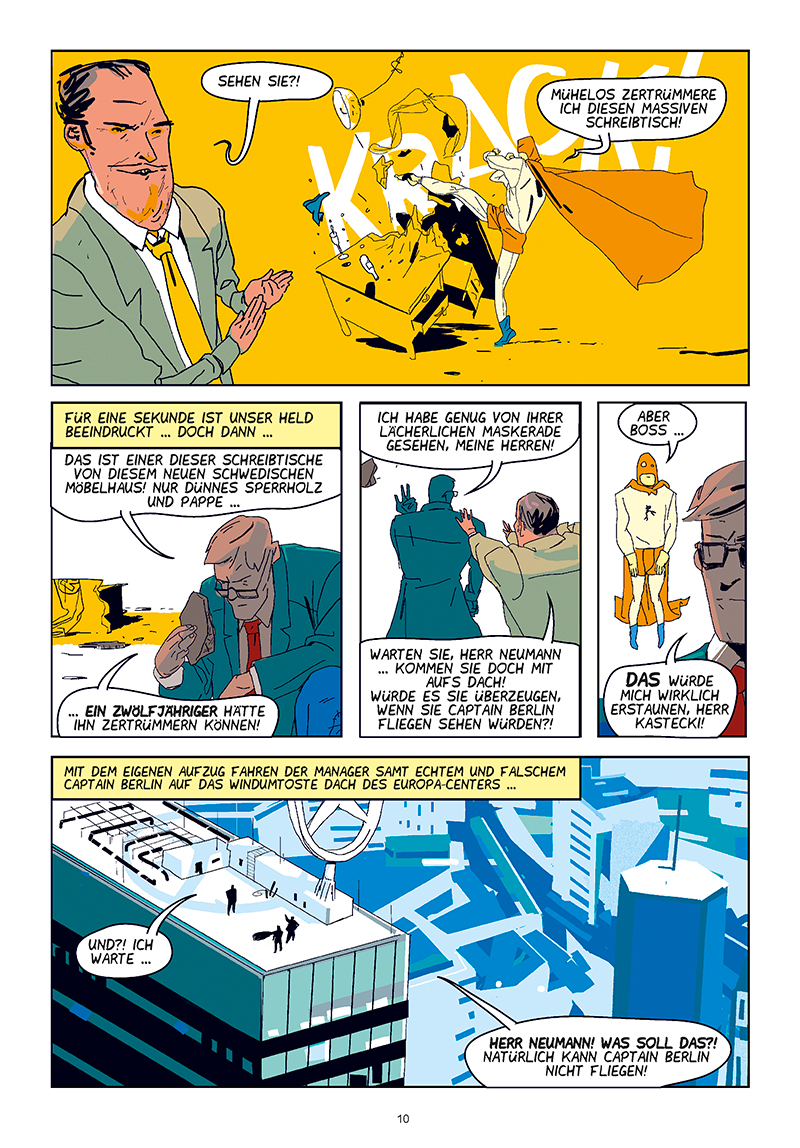 Abgerundet wird der im Retro-Stil layoutierte Comic mit einer Doppelseite, die einige von Captain Berlins Gegnern anführt sowie einem Briefkasten mit leidenschaftlicher Fanpost.
