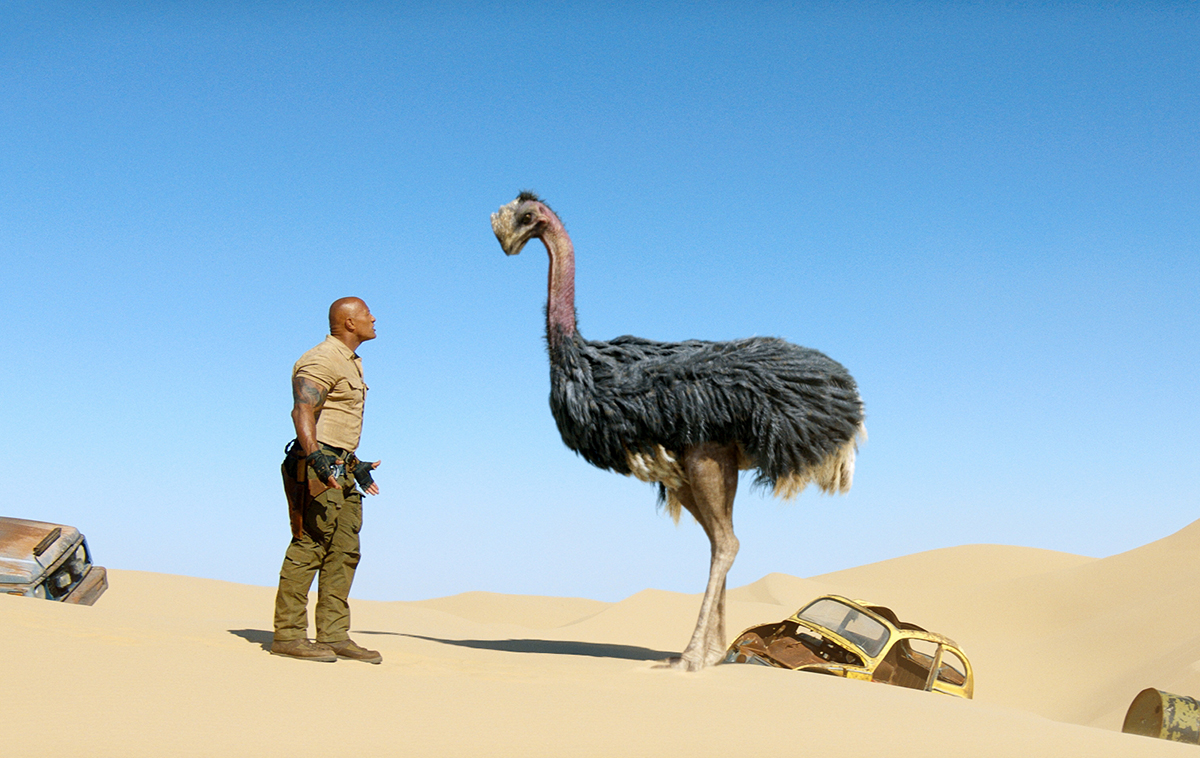 Die Spielorte haben sich geändert – statt dem Dschungel gibt es nun Wüste, Eis und Schnee –, ansonsten ist alles beim Alten geblieben; im Grunde geht Jumanji: The Next Level, obwohl handlungstechnisch einige Jahre später angesiedelt, dort weiter, wo sein Vorgänger aufgehört hat – nicht überraschend, zeichnen für das Drehbuch doch erneut Jeff Pinkner und Scott Rosenberg verantwortlich: Die Rahmenhandlung ist einmal mehr minimal und nur dazu da, um dem Videogame eine Existenzberechtigung zu verschaffen, immer noch stehen Action und Humor im Mittelpunkt, gerne auch auf Kosten der Logik und der Dreidimensionalität der Figuren. Diese nämlich sind immer noch dieselben wie vor zwei Jahren, eine charakterliche Weiterentwicklung gibt es nur in sehr zarten Ansätzen, das hätte wohl zu sehr den Wiedererkennungswert gestört.