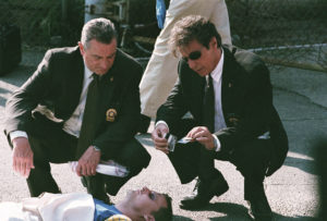 Ganz anders ist das bei Righteous Kill, in dem Jon Avnet seine Stars schon während des Vorspanns beim Schießtraining zusammenführt, auch wenn sie dann die Montage trennt und man sie bei unterschiedlichen Hobbys, De Niro beim Baseball, Pacino beim Schachspiel sieht. Dass die beiden Schauspieler sein größtes und auch sein einziges Kapital sind, scheint Avnet durchaus bewusst, denn er setzt ganz auf sie. Souverän spielen sie ihre Parts als mit allen Wassern gewaschene, altgediente Polizisten herunter, De Niro als der impulsive, Pacino als der besonnene.