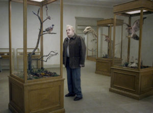 Einen nicht minder eigenen, aber sehr viel leichteren Ton schlägt der berüchtigte Schwede Roy Andersson mit seiner metaphorischen, melancholischen Komödie A Pigeon Sat on A Branch Reflecting On Existence an. Darin schickt er zwei ältere Handelsreisende wie Don Quichote und Sancho Panza durch die Lande, um Scherzartikel unter die Leute und diese damit zum Lachen zu bringen. Nur kauft nie jemand was und so lacht nur der Lachsack, unter Druck. Der Abschluss von Anderssons „Living“-Trilogie – nach Songs from the Second Floor (2000) und You, the Living (2007) – atmet wieder einen absurd-komischen Humor, der sich in 39 kleinen, gemäldeartigen Tableaus entfaltet. Zum ersten Mal gab es bei einer Vorführung sogar Szenenapplaus.