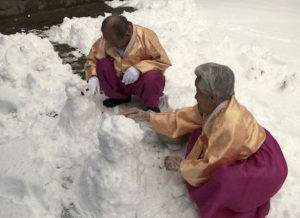 Sehenswert war auch Jin Mo-youngs My Love, Don’t Cross That River, ein Dokumentarfilm, der in der Republik Korea nicht weniger als rekordverdächtige fünf Millionen Menschen in die Kinos lockte. Überraschen kann einen das nicht, wenn man den Film sieht: Er beobachtet ein altes Ehepaar, das seit 76 Jahren verheiratet ist und in der tiefsten Provinz in einer einfachen Behausung lebt. Die Frau ist 90, der Mann 95, und sie begegnen einander immer noch mit Liebe, Respekt und Sorgfalt, aber auch mit viel Witz – etwa bei einer improvisierten Schneeballschlacht oder beim gemeinsamen Singen. Dass der reizende alte Mann im Laufe der Doku immer mehr erkrankt, schwächer wird und schließlich stirbt, drückt auch auf die Tränendrüsen hartgesottener Festivalbesucher.