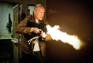 Kansas, 2044. Joe arbeitet als Looper, das Honorar ist nicht schwer verdient: Die Mafia-Opfer aus der Zukunft kommen kniend und verschnürt, mit einem Sack über den Kopf, müssen von ihm aus nächster Nähe erschossen, ihre Leichen entsorgt werden. Der Sold, in harter Silber-Währung der Einfachheit halber mit dem Opfer jeweils gleich mitgeschickt, soll Joe in Summe eine 30 Jahre währende Frühpension ermöglichen. Doch als ein mysteriöser, The Rainmaker genannter Boss des Jahres 2074 ziemlich viele Looper auf einmal in Rente schicken will, häufen sich die Komplikationen in der Gegenwart des Films. „Closing the Loop“ nennt man diesen Vorgang, dessen Bebilderung im Zentrum des Setups im ersten Akt des Films steht und der einen erzähllogisch nicht unraffinierten Kniff darstellt. Denn das konstante Kernproblem der Zeitreisemechanik im Erzählkino ist: Niemand kann die Vergangenheit ändern, ohne die Gegenwart zu beeinflussen. Wenn er aber, so wie hier, bloß zum sofortigen Sterben in die Vergangenheit geschickt wird, sollte er am Lauf der Geschichte nichts ändern können. Zumindest dann nicht, wenn der Looper sich an die Regel „Never let your loop run“ hält. Weil nun aber Old Joe (Bruce Willis) nicht einfach so von Young Joe (Joseph Gordon-Levitt in absurder, auf Bruce Willis hingetrimmter Maske) niedergestreckt werden will, wartet auf diesen jene äußere Flucht (im zweiten Akt) und innere Odyssee (im dritten Akt), die im Folgenden die Dynamik des Films ausmacht.