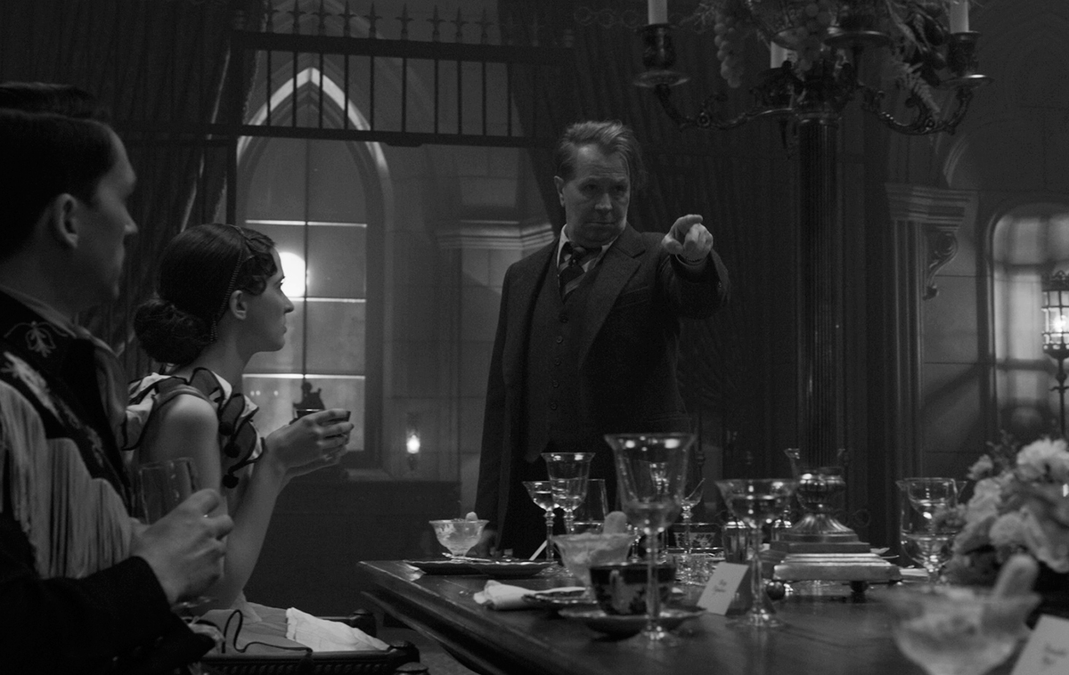David Fincher, einer der herausragenden Regisseure des US-amerikanischen Kinos der vergangenen zweieinhalb Jahrzehnte, hat sich dieses Szenarios – das Drehbuch verfasste sein 2003 verstorbener Vater Jack – angenommen und seine Position mit Mank bestätigt. Kulturpessimist Fincher, der seine grimmige Skepsis mittels populären, doch höchst unterschiedlichen Sujets – wie etwa Seven, The Game, Fight Club oder Zodiac – zu vermitteln versteht, hat Mank erwartungsgemäß nicht als Biopic konventioneller Art inszeniert. Das Entstehen von Citizen Kane bildet dabei die linear in Szene gesetzte Basis, von der Fincher mittels einer Reihe von Flashbacks Herman Mankiewicz’ Erfahrungen – begleitet von seinem jüngeren Bruder Joseph, der selbst einer der ganz großen Regisseure werden sollte – im Hollywood der dreißiger Jahre rekapituliert. Hier erweist sich Mank als Hommage an die viel zitierte goldene Ära Hollywoods, doch Fincher betont dabei ebenso deutlich die dunklen Seiten der Traumfabrik. Denn neben der echten Filmbegeisterung, die bei den großen Studiochefs wie Louis B. Mayer zweifellos vorhanden ist, sieht sich Mankiewicz auch immer wieder mit unfassbarer Ignoranz konfrontiert. Und wie im Zweifelsfall die Machtverhältnisse sind, wird er selbst brutal erfahren müssen. Die eloquente Spitzzüngigkeit des belesenen vormaligen Theaterkritikers Mankiewicz – Gary Oldman liefert an der Spitze eines wunderbaren Ensembles eine seiner besten Karriere-Leistungen ab – wird nur solange goutiert, bis der vermeintliche Hofnarr Hollywoods den Mächtigen wirklich auf die Füße tritt. Und Fincher zeichnet auch das von der großen Depression schwer gezeichnete Amerika, das in der Suche nach gesellschaftlichen Lösungen politisch stark gespalten – anhand der Wahl des Gouverneurs von Kalifornien 1934 zwischen Upton Sinclair mit seinem umfassenden Sozialprogramm, für den sich Herman J. Mankiewicz stark macht und Frank Merriam wird diese Kluft verdeutlicht – erscheint.