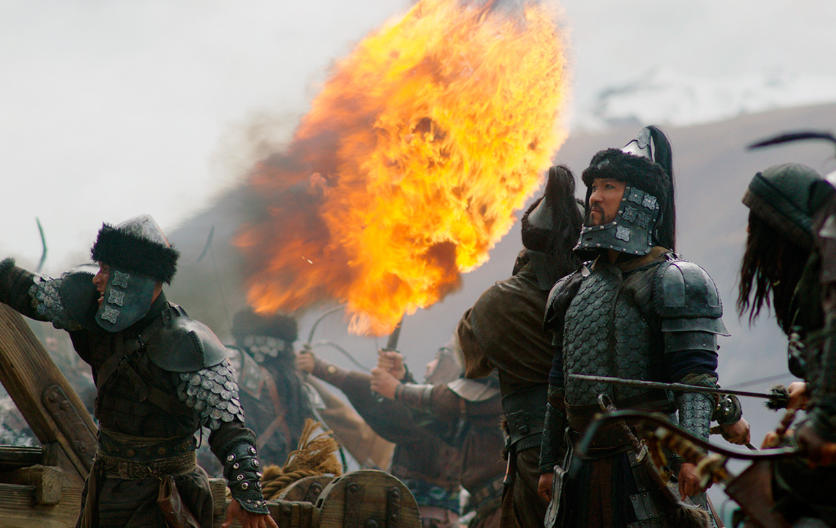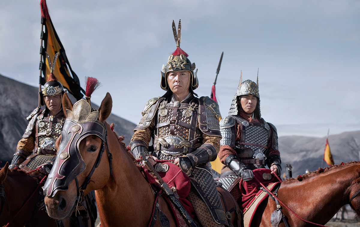 Seinen Mehrwert sucht Real-Mulan darüber hinaus in typisch asiatischen Martial-Arts-Choreografien. Allerdings vergeblich, weil auf einen Choreografen, der diese Kämpfe inszenieren könnte, offenbar verzichtet wurde und stattdessen der Schnittmeister in der Post-Produktion die Ansage bekam, da irgendwie was zusammen zu montieren. Genauso sieht das dann auch aus. Was insofern geradezu sträflich ist, als Martial-Arts-Recken wie Donnie Yen in der Rolle des Generals und Jet Li in der des Kaisers agieren. Jet Li darf gar nur ein paar Mal ein paar Schläge abwehren, bevor er sich hoch oben auf einem Gerüst gefesselt wiederfindet und nur mehr ohnmächtig zusehen kann. Und Donnie Yen darf zwar einige beeindruckende Routinen vollführen, die dann aber schlimm verhackstückt werden. Nicht besser ergeht es der chinesischen Diva Gong Li in der Rolle der Hexe, deren Schönheit von einem Streifen weißer Farbe quer übers Gesicht gedämpft wird. Der unbotmäßige Streifen soll vermutlich die Schwarze Magie unterstreichen, die in ihr wirkt. Er weist aber nur unnötig darauf hin, was hier alles verschwendet wird.