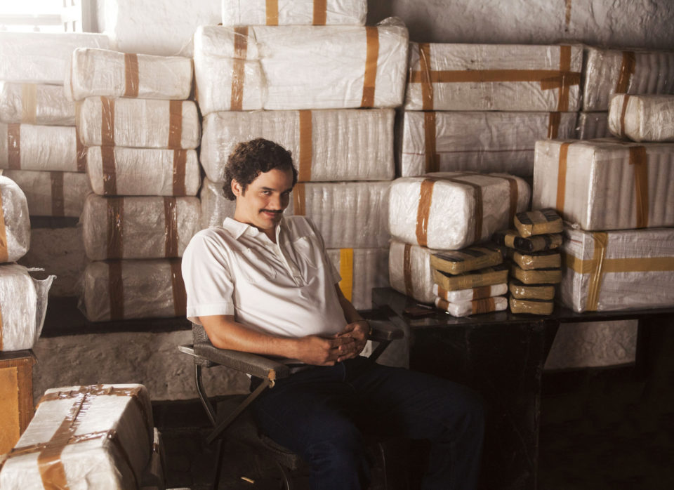 „Plata o plomo?“ will Pablo (Wagner Moura) von einem Gendarm wissen, der ihn wegen seiner Schmuggelware nicht passieren lassen will. Silber oder Blei: Entweder er lässt sich bestechen, oder es fliegen die Kugeln. Während Pablo Emilio Escobar Gaviria die industrielle Massenproduktion von Kokain in den internationalen Markt einführt, näht seine Mama Hermilda dem Gefolgsmann „Pablitos“ Kokaintaschen ins Sakko. Ja, in den siebziger Jahren konnte man Drogen bequem in die Jacke einnähen und von Bogotá nach Miami fliegen, um dort nordamerikanische Nasen zu beglücken. Pablo Escobar etablierte die erste direkte Drogenroute von Kolumbien in die USA und avancierte, wie man weiß, zu einem der einflussreichsten Kriminellen des 20. Jahrhunderts.