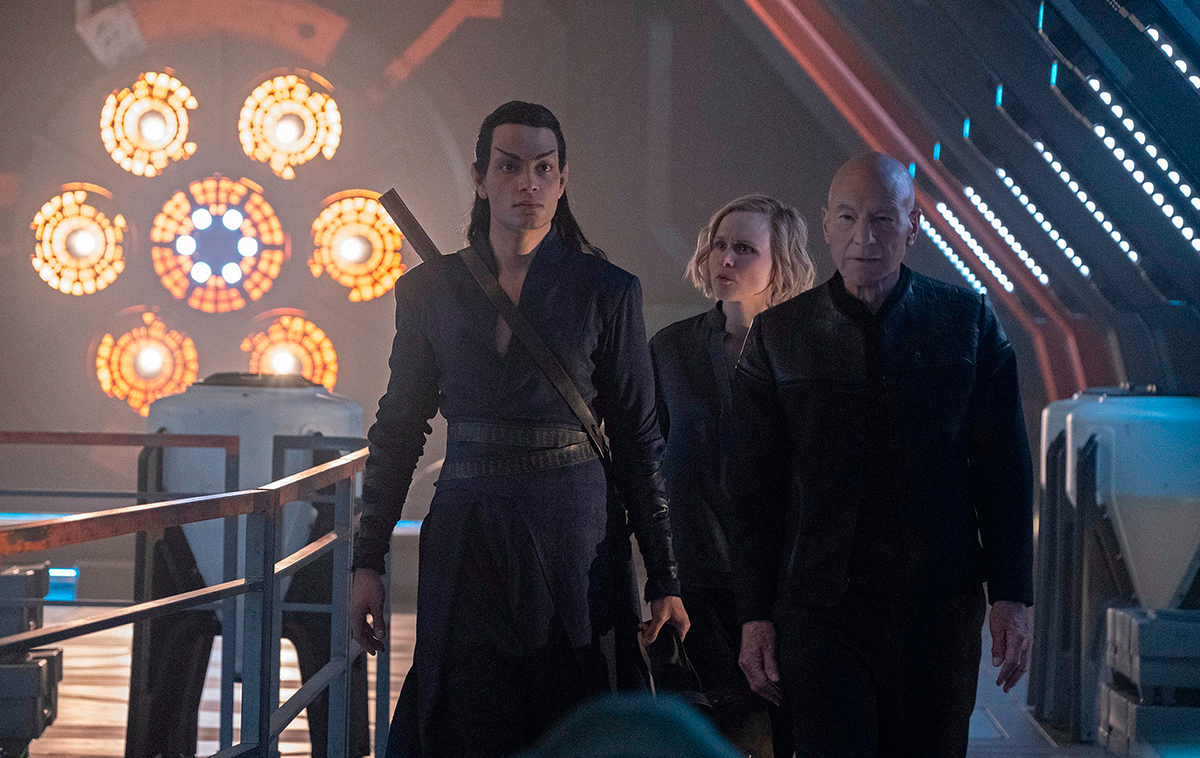 Wer hätte es gedacht? Nach sieben langen Jahren Star Trek: The Next Generation (1987 – 1994) und dem Kinokassensturz von Star Trek: Nemesis 2002 hat sich Sir Patrick Stewart doch noch einmal davon überzeugen lassen, dass die Franchise und damit sein stets ehrenwerter Sternflottenführer Jean-Luc Picard noch längst nicht am Ende sind. Dabei hatte der heute 79-jährige britische Shakespeare-Schauspieler mehrmals verlauten lassen, dass Picard für ihn definitiv gestorben sei, zumal er sich ungern wiederhole und lieber nach vorn schaue – und zwar nicht vom Deck der Enterprise aus. Dass er jetzt doch noch einmal in die Rolle schlüpft hat viel damit zu tun, dass Star Trek: Picard der Handlung einen in der Gegenwart verhafteten Rahmen verleiht, weniger Sci-Fi-Action ist und trotz des Zukunftssettings im Jahre 2399 mehr über unsere Welt heute verrät, als dem einen oder anderen lieb sein dürfte. Picard selbst befindet sich zu Beginn der Serie längst im Ruhestand, lebt in Frankreich mit Hund und Weingut und will von der Vergangenheit ebenso wenig wissen wie der Schauspieler, der ihn verkörpert. Doch wenn Stewart erstmal ins Schwärmen gerät über seinen Picard, dann ist er gleich wieder ganz in seinem Element und wirkt so gefasst, ernst, heiter und berührt zugleich, dass man sich gerne von ihm und seiner einzigartigen Stimme überzeugen lässt, dass die Neuauflage nicht nur ihre Berechtigung, sondern auch ihren ganz speziellen Reiz hat.