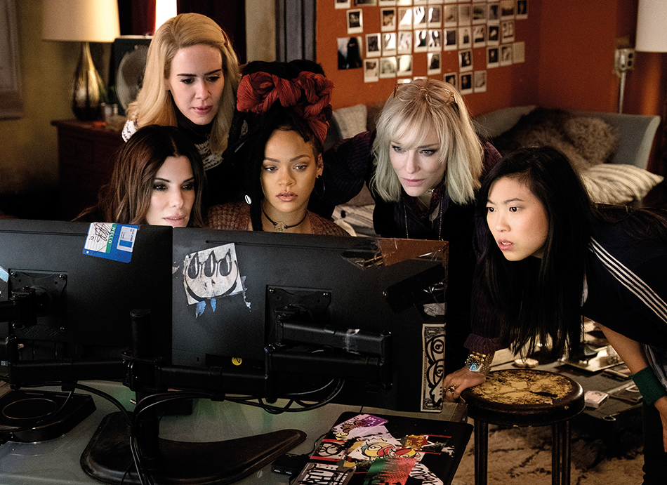 Jedenfalls braucht Debbie natürlich hochspezialisiertes Personal, allen voran ihre alte Kumpelin Lou (Cate Blanchett, grandios wie immer), die sich derzeit mit dem Panschen von Wodka buchstäblich über Wasser hält und die mitmacht, obwohl sie zunächst skeptisch ist. Danach geht es Schlag auf Schlag. Um an Daphne überhaupt heranzukommen, verpflichtet man die Modesignerin Rose (Helena Bonham Carter), die Steuerschulden hat und ein bisschen Kleingeld gebrauchen kann, dazu eine Edelsteinexpertin, eine Hehlerin, eine Taschendiebin und – Rihanna als Hackerin „Nine Ball“. Die Pop-Lady macht dabei erstaunlich gute Figur als Schauspielerin.