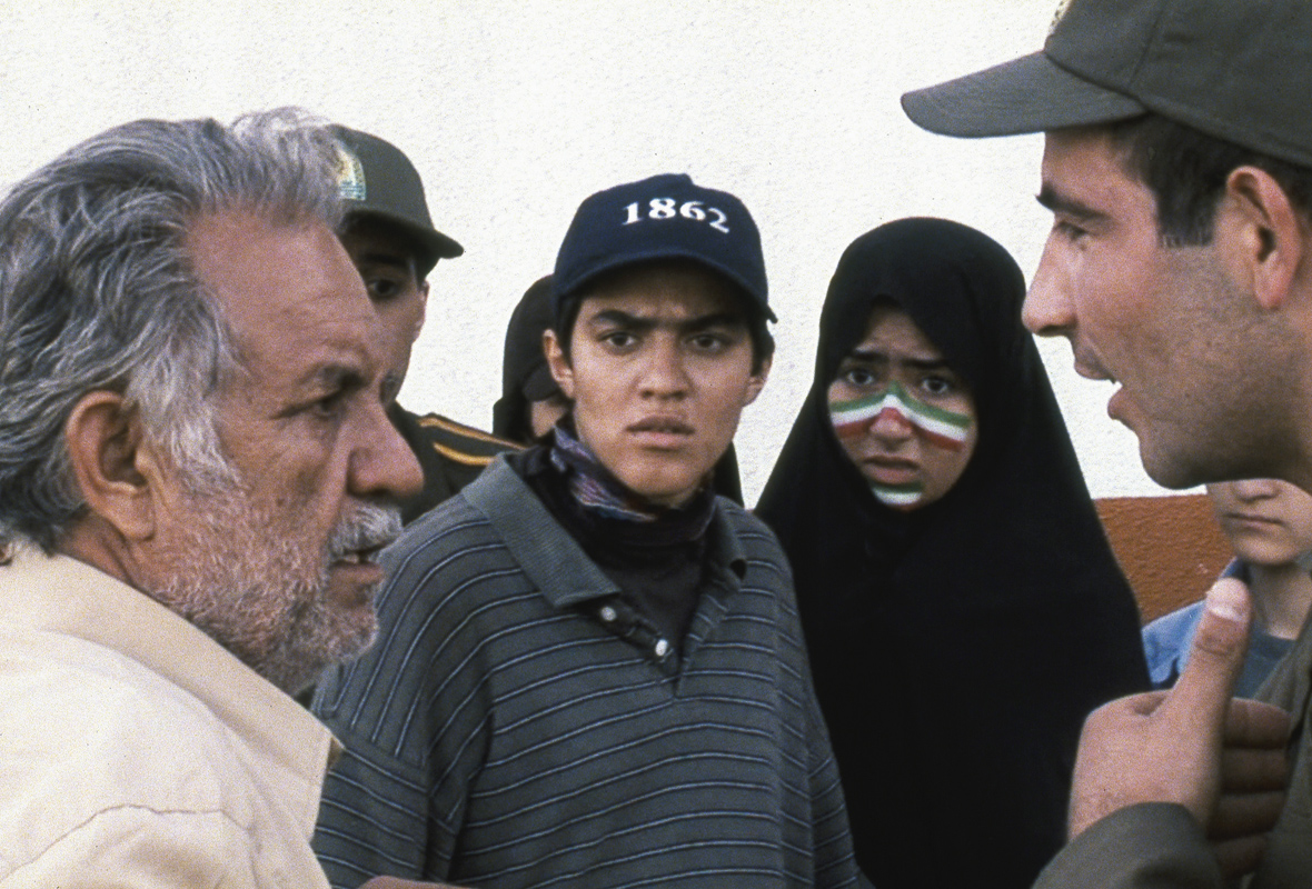 Inmitten der lautstarken Fans sitzt ein schüchterner Junge, die Wangen in den Landesfarben geschminkt. Der zurückhaltende Jüngling ist ein verkleidetes Mädchen, das einiges zu riskieren bereit ist, um ebenfalls das Massenspektakel miterleben zu können: Der Kauf der überteuerten Eintrittskarte, das Vorbei-Schummeln an den Kontrollpunkten, die Leibesvisitationen; überall im Stadion wimmelt es von Soldaten, die auf Frauen Jagd machen. Es ist das Geschlecht, das den Frauen einen gewaltsamen Platzverweis beschert. Iranischen Frauen ist es untersagt, ein Fußballmatch zu besuchen, um sie – so der iranische Staat – vor männlichen Kraftausdrücken und frauenfeindlichen Sprüchen zu bewahren, denn „Männer sind keine Verwandten“.