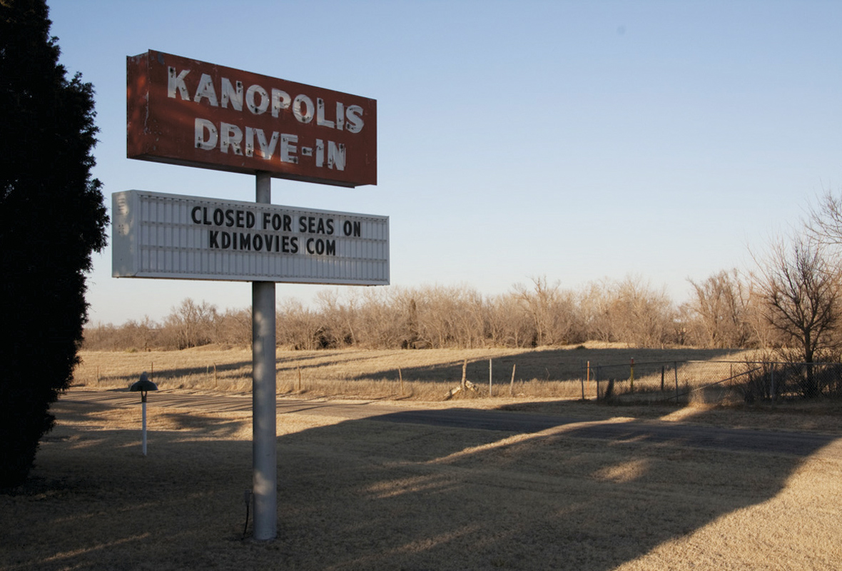 Eröffnet 1952 – geschlossen 2006: das typische Schicksal, wie es vielen US-amerikanischen Drive-In-Kinos widerfuhr. Von den 125 Outdoor-Kinos im Staate Kansas, die es einmal gab, waren 2010 nur noch neun (!) in Betrieb. Doch aus Kanopolis, einem Dörfchen mit gerade einmal 500 Einwohnern, gibt es Positives zu berichten: Der 30-jährige Golfplatz-Wart Josh Webb und seine Frau Amanda wollten das Juwel, in dem Josh vor vielen Jahren seine ersten Kinoerlebnisse hatte, nicht weiter verfallen lassen und kauften es im Oktober 2010 kurzerhand. Mit Farbeimern, Werkzeug und viel Enthusiasmus bewaffnet, machten sie sich an die Restaurierung des atmosphärischen Freiluftkinos. Im Mai 2011 schließlich wurde es feierlich wiedereröffnet.
