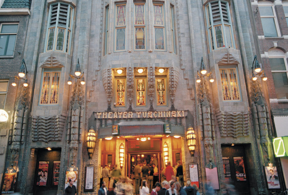 1921 glanzvoll eröffnet, besticht das Theater äußerlich vor allem durch die eklektizistische Mischung von Baustilen (Art Déco, Amsterdamer Schule, Neugotik). Im Laufe der Geschichte hat das Kino turbulente Zeiten durchlebt und musste viele (Namens)-Änderungen hinnehmen. So wurde es in der NS-Zeit unter dem Namen Tivoli hauptsächlich als Varietétheater und Konzertstätte genutzt. Nach der Befreiung Amsterdams wurde es wieder in Tuschinski Theater umbenannt und als Kino genützt.