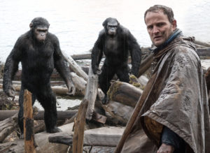 Was diesen Aspekt angeht, gibt es auch bei Dawn of the Planet of the Apes nichts zu meckern, insbesonders der Performance-Capture-erprobte Andy Serkis verleiht seinem Charakter – diese Apostrophierung ist in dem Fall mehr als gerechtfertigt –, dem Schimpansen Caesar, allein durch die Körpersprache Nuancen, die so mancher Schauspielkollege bei menschlichen Rollen nicht erreicht. Doch ansonsten vermag Matt Reeves, der die Regie übernommen hat, der Geschichte wenig Neues abzugewinnen, auch deshalb, weil seine Inszenierung sich phasenweise zu einem CGI-Overkill hinreißen lässt. Zu vorhersehbar und über manche Strecken auch zu eindimensional – insbesondere Gary Oldman als Anführer der menschlichen Gemeinde muss sein Talent mit einer stereotypen, blassen Figur verschwenden – verläuft der Plot um die Auseinandersetzung zwischen Primaten und Menschen, die unausweichlich Richtung Eskalation steuert. Natürlich funktioniert die Parabel über unterschiedliche Möglichkeiten der Konfliktlösung wie Gewalt versus Dialog – angesichts der derzeitigen Brandherde auf diese Planeten ein Thema, dessen Aktualität augenscheinlich ist und eine Vielzahl dramaturgischer Optionen eröffnet hätte – hier wieder einigermaßen gut, doch der Erkenntnisgewinn, dass dabei hüben wie wie drüben Tauben und Falken existieren, ist schlussendlich doch ein wenig gering.