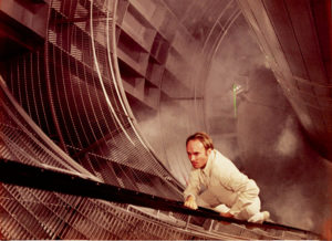 Die rotierende Darstellung der Architektur des Wildfire-Labors gilt als der erste CGI-Effekt in einem Film, kreiert vom Effekt-Spezialisten Douglas Trumbull (u.a. 2001; Blade Runner; The Tree of Life, siehe ray 0614), der auch für Wises Star Trek: The Motion Picture tätig war. Ein dreidimensionales Drahtgittermodell des Labors wurde zunächst auf einem Plotter ausgegeben und die Ausdrucke dann wie bei der Produktion eines Zeichentrickfilms nacheinander abfotografiert. Im Film dreht sich das Vektormodell des Labs auf einem Flachbildschirm in Rückpro und zeigt den Aufenthaltsort der Wissenschaftler mit ihren Initialen an. Die leere, aseptisch kalte Atmosphäre des Labors geht auf den Szenenbildner Boris Leven (in den letzten Lebensjahren, zwischen New York, New York, 1977, und The Color Of Money, 1986, auch für Martin Scorsese tätig) zurück, mit dem Robert Wise seit West Side Story (Oscar für Art Direction) kooperierte. Die verschiedenen Ebenen des in die Tiefe konstruierten Labors in Andromeda entstanden durch Umstreichen lediglich einer für den Film gebauten Ebene.