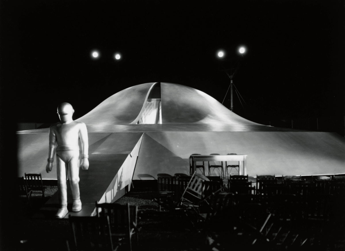 An zeichenhafter Lakonie ist die reduzierte Darstellung eines Düsenjäger-Absturzes in Andromeda kaum zu übertreffen: Nach Überflug über verseuchtes Gebiet sieht man den Kopf des Piloten, dessen Sauerstoffmaske sich aufzulösen beginnt, dann die kreiselnden Instrumentenanzeigen im Cockpit, dann schon, zu Geräuschen der Detonation, die Landkarte, auf der die Absturzstelle verzeichnet ist. Später werden Wrackteile in der Wüste untersucht, das Ereignis selbst ist Nebensache.