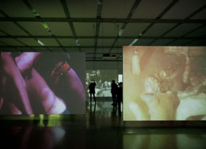 Jetzt mache ich „Bühnenessays“, die sind inspiriert von Harun Farockis Essayfilmen. Das war auch eine hybride Form, die man so im Film zuvor nicht gehabt hatte. Farockis Kommentare, die Art, wie er Phänomene analysiert und intelligent befragt hat, das ist mein großes Vorbild. Bei meinen neueren Arbeiten stehen nicht mehr Wiederholungen und Loops im Vordergrund – wie z.B. bei der TRIKE-Serie oder Maschinenhalle#1. Diese Arbeiten ab Ende der neunziger Jahre waren von Experimentalfilmen von Peter Kubelka und Martin Arnold  inspiriert. Für meine jetzigen Themen und Anliegen ist Text fast unumgänglich, so bin ich beim Essay gelandet. In der Performance werden Texte gesprochen, die die verschiedenen anderen Medien zusammenführen.