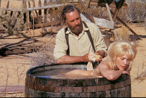 „Ain’t had no water since yesterday, Lord. Getting a little thirsty. Just thought I’d mention it. Amen.” The Ballad of Cable Hogue (1970) ist nur auf den ersten Blick ein atypischer Film Peckinpahs: Die Geschichte des schon in die Jahre gekommenen Cable Hogue (Jason Robards), der von zwei Kameraden ohne Wasser in der Wüste zurückgelassen wird, knapp vor dem Verdursten ein Wasserloch findet und in Folge eine florierende Postkutschenstation aufbaut, ist sicher der ruhigste und heiterste Film Peckinpahs. (Dass und warum die Dreharbeiten in Nevada so gar nicht entspannt waren, kann man in Mike Siegels Fanbuch Passion & Poetry: Sam Peckinpah in Pictures nachlesen.) In seiner Rezeption hat The Ballad of Cable Hogue immer unter seinem Vorgänger The Wild Bunch und darunter gelitten, dass das, was diesen persönlichsten Film Peckinpahs ausmacht, nicht den Vorstellungen entspricht, die man mit dem Regisseur bis dahin verband. Deshalb gibt es im Vergleich zu The Wild Bunch keinen Strauß an gesellschaftspolitischen Interpretationen, sondern an Beobachtungen, die sich unmittelbar auf den auteur Peckinpah beziehen und auch den Audiokommentar der DVD dominieren: Die Frage nach Religion und Moral (hier personifiziert im scheinheiligen Priester Joshua Sloane); die Choreografie der Personen (etwa in der wunderbaren Schlussszene am Grab von Cable Hogue); oder der Einsatz visueller Gimmicks (wie die Fragmentierung des Bildes am Beginn oder die slapstickartigen Zeitrafferaufnahmen). The Ballad of Cable Hogue ist aber auch gleichzeitig eine tragikomische Liebesgeschichte zwischen dem alten, auf Rache sinnenden Cable und der Hure Hildy (Stella Stevens), die mit ihm ein neues Leben beginnen möchte und für das es am Ende doch zu spät ist: Am Ende wird Cable – wie als Nachtrag zur Eröffnung von Ride the High Country – von dem Auto, mit dem Hildy gekommen ist um ihn abzuholen, überrollt werden.