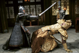 Auch ein wenig überraschend (oder auch nicht) ist, dass diesmal, trotz oder wegen all der Farbenpracht, das Auge bald erlahmt. Von den Kostümen über die Waffen, vom Schmuck bis zu den Möbeln, von den Wänden bis zur Decke, von den gigantischen Höfen des Palastes bis zu den Privatgemächern – alles ist so ausgestattet (Production Design: Hua Tingxiao, Kostüm: Yee Chung Man, beides alte Bekannte Zhang Yimous), dass man sich bald fühlt, als hätte man zu viel Buttercremetorte mit Schlagobers gegessen. Dafür hat Zhang eine interessante Vorlage für seine Geschichte gewählt, die zwar im Presseheft schamhaft verschwiegen wird, aber in China zu den bekanntesten, beliebtesten und meist gespielten Theaterstücken zählt: Lei yu (zu deutsch: Gewitter) stammt aus dem Jahr 1933. Der Stoff wurde mehrmals verfilmt, u. a. 1957 in Hongkong mit dem jungen Bruce Lee in einer kleinen Rolle. Der Autor des Stücks, Cao Yu (1910–1996), zählt zu den prominentesten Dramatikern des Landes und hat quasi im Alleingang das westliche Theater in China, wo es kaum präsent war, eingeführt. Er war ein hoch gebildeter Mann, übersetzte Ibsen und O’Neill ins Chinesische und traf in den USA mit Bertolt Brecht zusammen. Sehr spät, nämlich 1956, wurde er Mitglied der KP und auch höherer Kulturfunktionär, ehe er in der Kulturrevolution – wie so viele andere – als Reaktionär verunglimpft wurde.