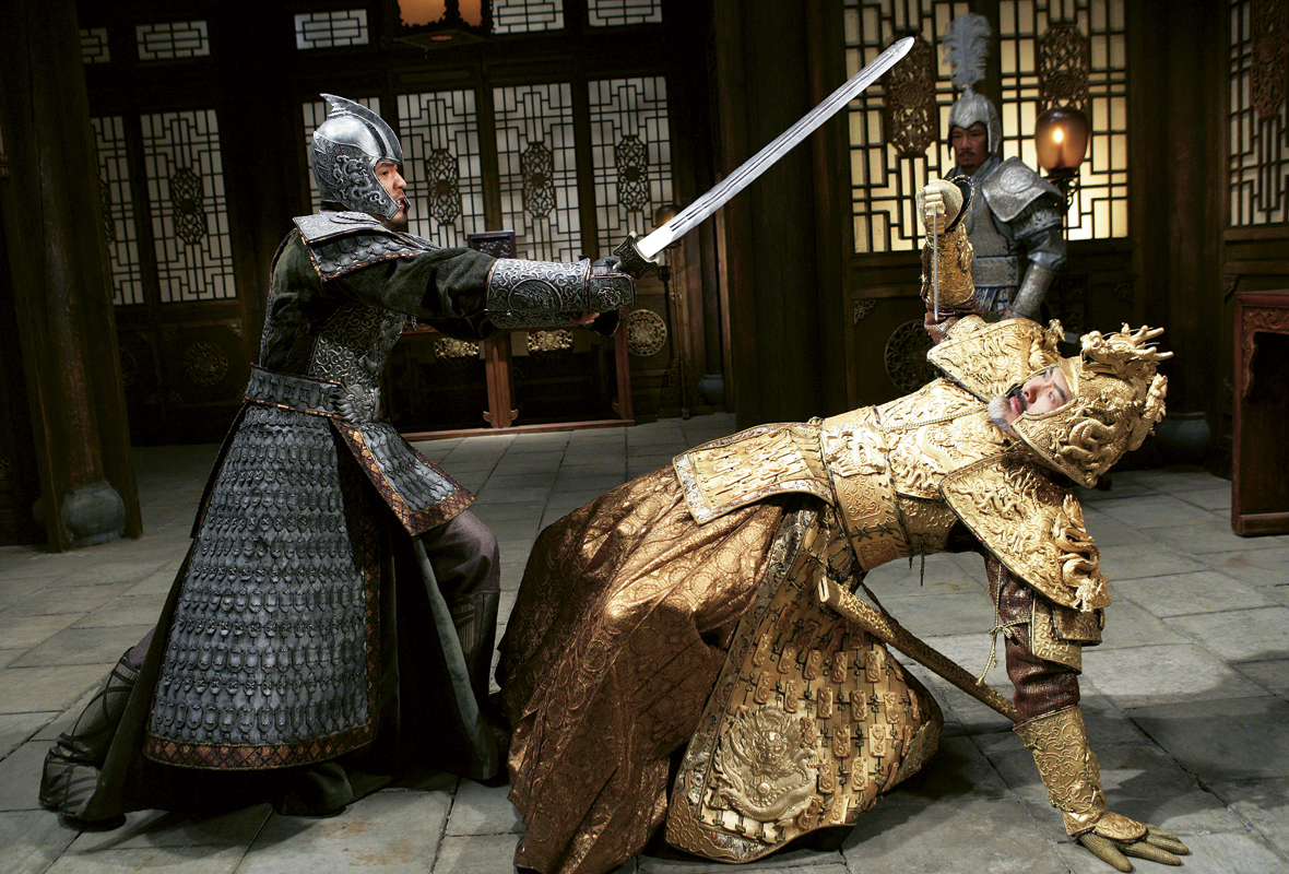 Doch er ließ sich nicht lange bitten und legte mit Hero (2002) sein eigenes Spektakel vor, seinen aufwändigsten Film bis dahin und gewiss auch seinen ehrgeizigsten. Zhang ließ die Superstars Andy Lau, Tony Leung, Jet Li und Maggie Cheung aus Hongkong antanzen und entwarf seinen Schlachtenreigen geradezu am Reißbrett, ganz nach dem Motto: „Was Ang Lee kann, kann ich schon lange.“ Während Lee auf Massenszenen verzichtete, malte Zhang mit Heerscharen von Statisten und in fulminanter Farb- (Kamera: Christopher Doyle) und Actionregie (Ching Siu-tung) ein visuell denkwürdiges Gemälde, dem nur eines fehlte: die Seele. Die verzwickte Geschichte um die Einigung des zerrissenen chinesischen Reiches vor 2000 Jahren und um einen versuchten Königsmord hatte eher die Qualitäten eines Schachspiels als die eines Actionkrachers. Die Spekulationen darüber, was Zhang gemeint habe könnte, trieben wilde Blüten – im Ausland wie in China selbst, wo man ihn gleichermaßen der Subversion wie der Regierungspropaganda beschuldigte. Ähnliches galt für House of Flying Daggers (2004), dessen Geschichte ebenso diffus war und weit hinter den Schauwerten zurückblieb. Doch der Trend zum Spektakel hält an, die Kassenerfolge sprechen Bände. Inzwischen haben auch Zhang Yimous ewiger Rivale, der weit weniger talentierte Chen Kaige (The Promise), Ronnie Yu (Fearless) und Chinas Kommerz-Spezialist Nr. 1, Feng Xiaogang (The Banquet, siehe auch Isabel Woltes Text auf Seite 24), nachgezogen.