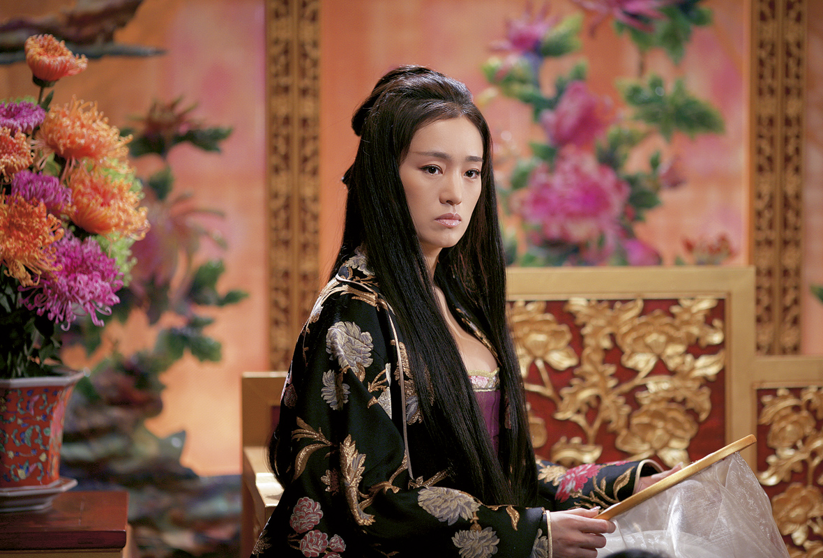 Kein Wunder also, dass Zhang Yimou noch einmal eins daraufsetzen musste. Das Resultat ist sein neuester Film, Der Fluch der Goldenen Blume. Von der ersten bis zur letzten Sekunde schwelgt Zhang Yimou in einem Rausch der Farben und der Eindrücke. Der Film hebt an, als im Kaiserpalast anno 928 (Tang-Dynastie) der Tag beginnt. Hundertschaften junger Mädchen erheben sich von ihren Lagern und schnüren sich die Busen hoch, um ihr Tagwerk zu beginnen. Die Kaiserin (Gong Li) hat den beeindruckendsten von allen – so viel deutlich sichtbares Fleisch war selten im volksrepublikanischen Film, und schon allein deswegen eckte Zhang Yimou wieder einmal an in der Heimat, wo man die Busenparade „unschicklich“ fand. Dramaturgisch zwingend ist sie jedenfalls nicht, denn der Kaiser (Chow Yun-fat, ein wenig deplatziert, wie immer, wenn er historisch wirken soll) und die Kaiserin haben sich längst auseinander gelebt, schlimmer noch: Der Kaiser versucht seine Gattin mit Hilfe einer Medizin, die er ihr selbst wegen ihrer „Launen“ verschreibt und deren Einnahme er streng überwacht, in den Wahnsinn zu treiben. Sie wiederum sinnt auf Rache für alles, was er ihr in langen Jahren angetan hat. Das Geschehen kulminiert in den Tagen vor dem groß angelegten Chrysanthemen-Fest (daher der Titel) und involviert die drei Söhne des Kaiserpaars, von denen der älteste von einer früheren Geliebten des Kaisers stammt, den Leibarzt, dessen Tochter und dessen Frau, die, wie sich herausstellt, die Mutter des ersten Kaisersohnes ist. Von – überraschend – wenigen, aber umso personalintensiveren Actionsequenzen (Dank an die Volksarmee, die Komparsen zur Verfügung stellte) abgesehen, ist Der Fluch der Goldenen Blume im Wesentlichen ein düsteres Kammerspiel, ein wilder Reigen dunkelster Gefühle, die Shakespeares Königsdramen zur Ehre gereichen würden. Vom versteckten, jahrelang aufgestauten Hass bis zur blanken Aggression, vom Inzest bis zur hemmungslosen Machtgier ist alles vorhanden, was ein wahrhaft mörderisches Finale geradezu prädestiniert.