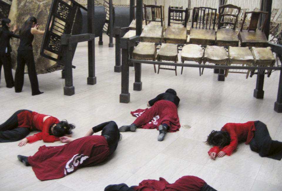 Jue Chang – Dancing Body / Drumming Mind (The Last Song), eine der weiträumigsten Arbeiten Chen Zhens, wird im Zentrum der Wiener Ausstellung stehen. Mehr als hundert Tische und Betten aus den verschiedensten Weltregionen, alle mit Leder bespannt, pendeln von einer einfachen Balkenkonstruktion und bilden ein überdimensioniertes, vielstimmiges Schlaginstrument. Gespielt werden kann es mit Zweigen, Polizeischlagstöcken und Steinen. Der viel zitierte clash of cultures soll hier im wortwörtlichen Sinn an- und durchklingen.